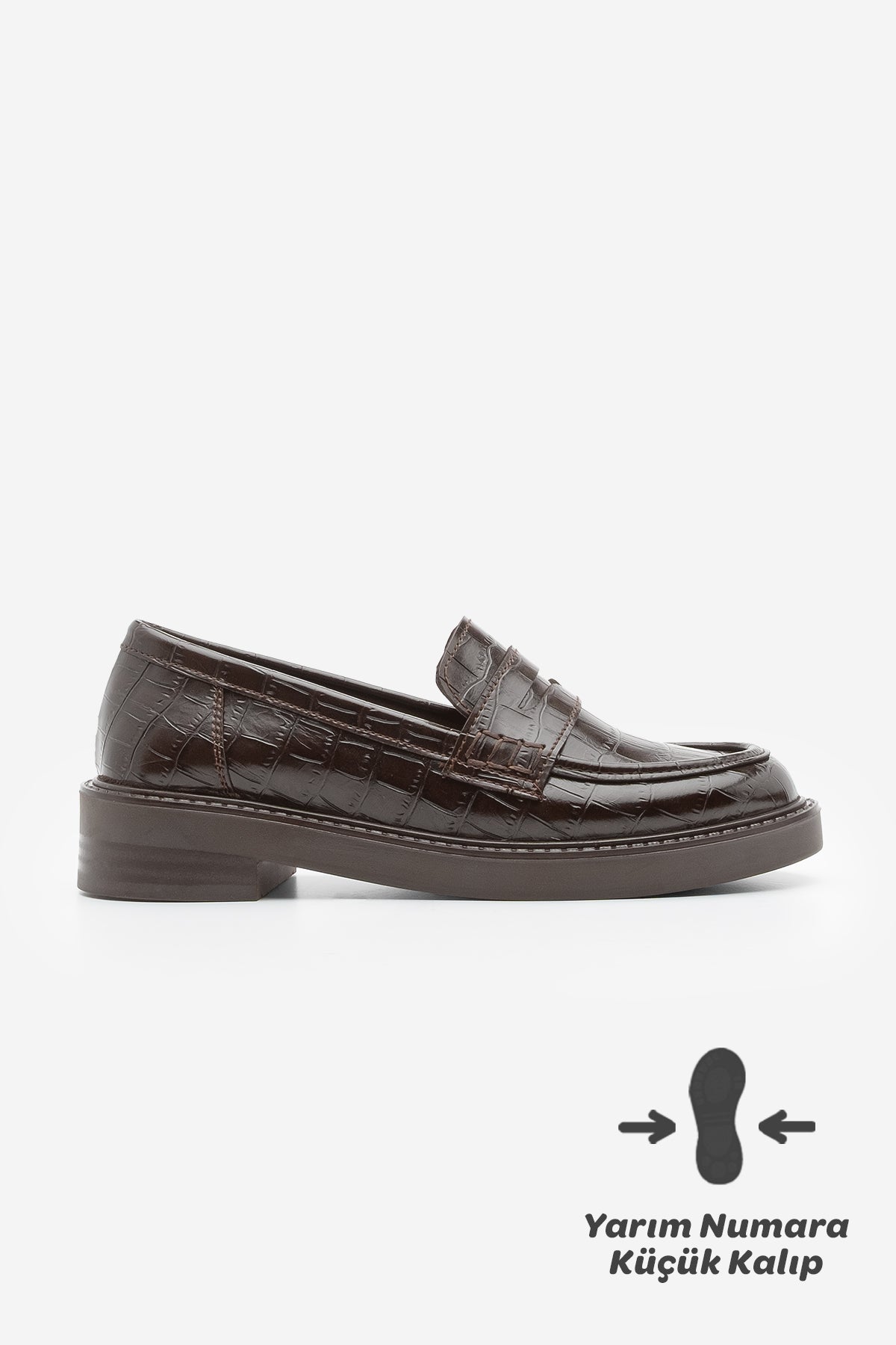 Kadın Loafer Günlük Ayakkabı Fonle - Kahve Croco