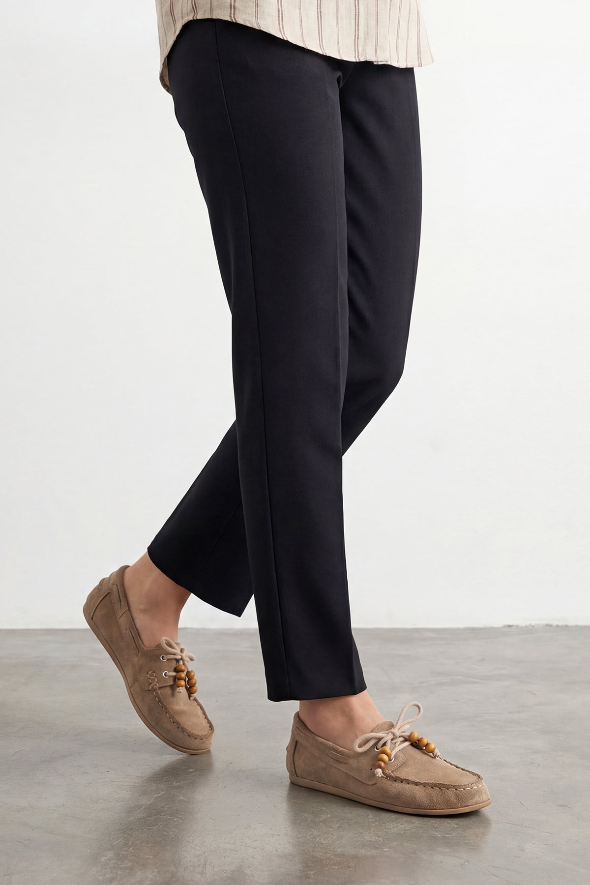 Kadın Hakiki Deri Boncuklu Loafer Günlük Ayakkabı Milton - Camel Süet