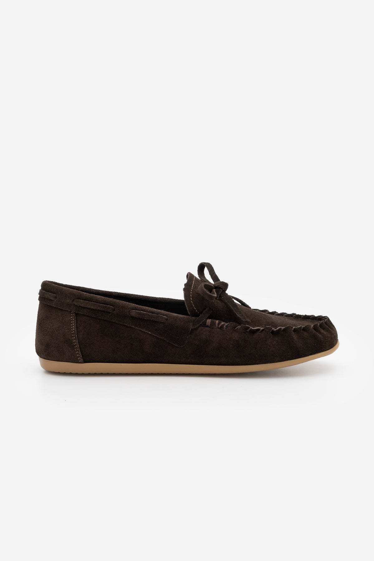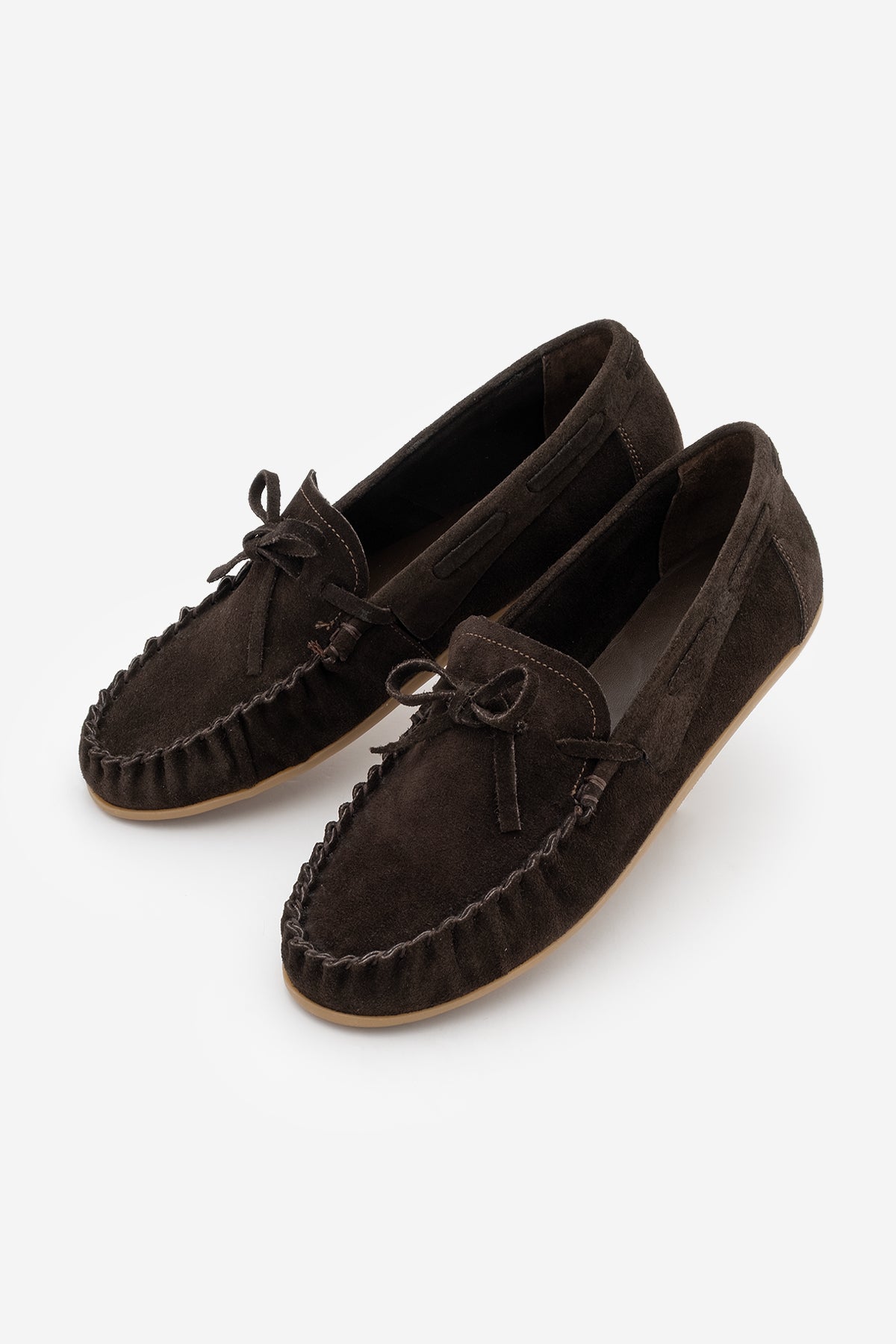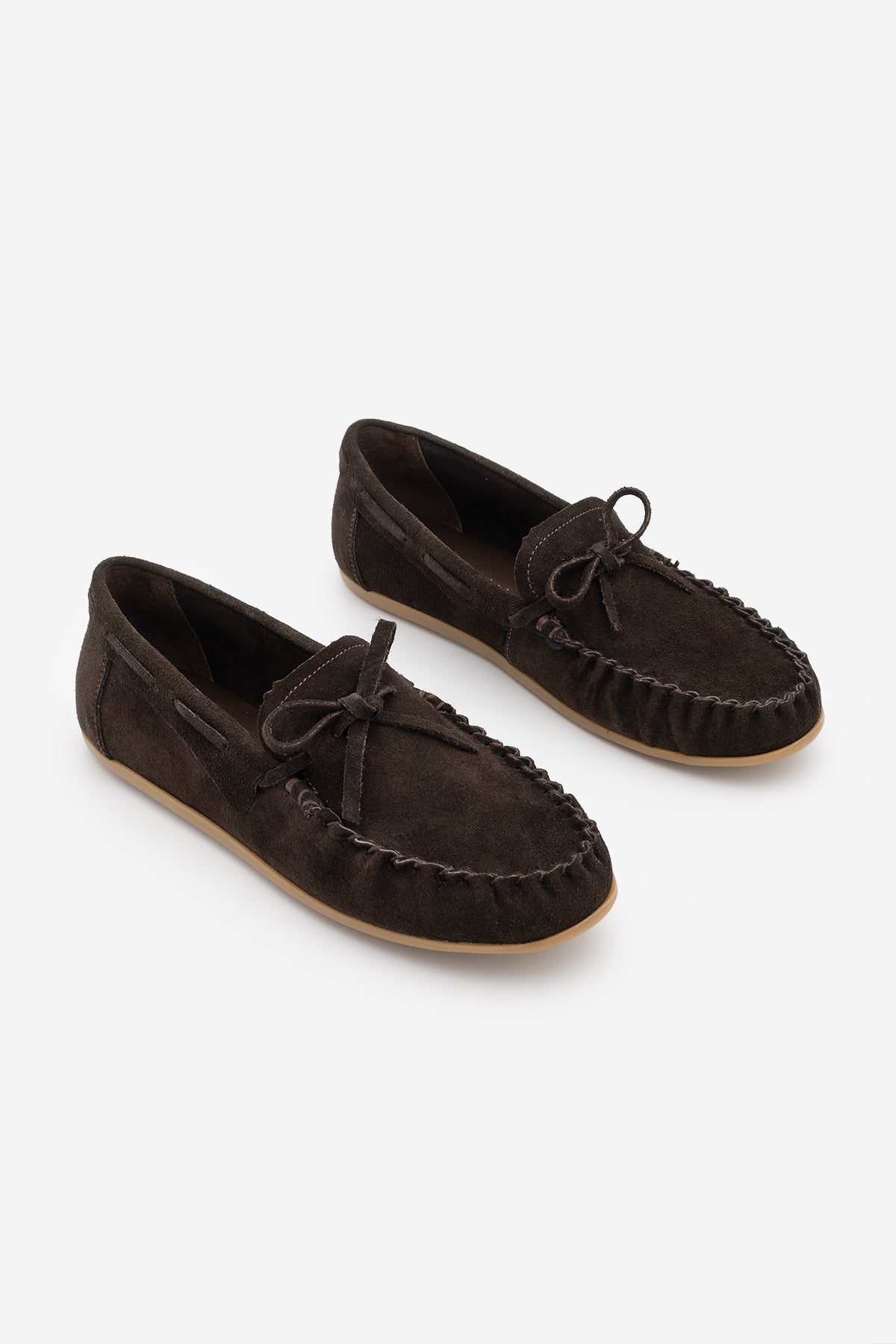 Kadın Hakiki Deri Büzgülü Loafer Günlük Ayakkabı Tavon - Kahve Süet