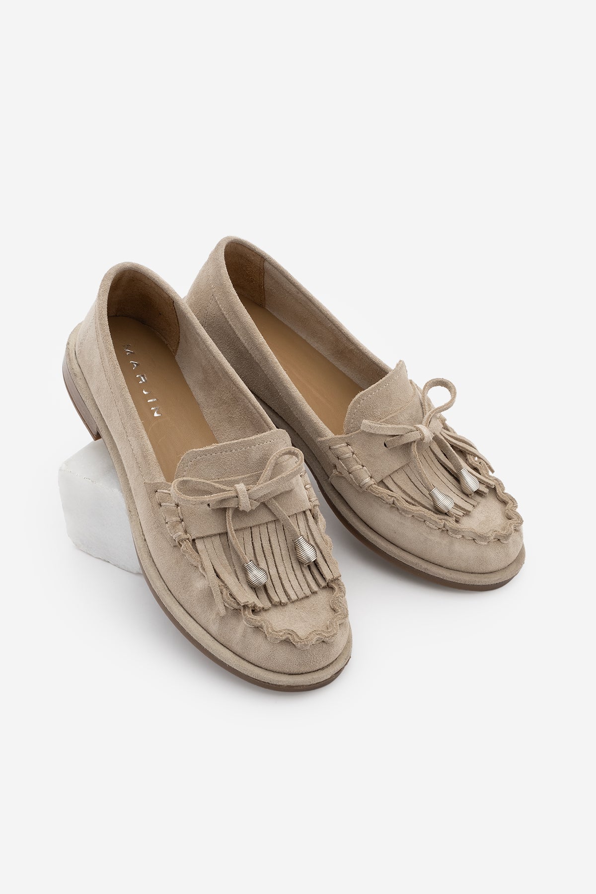 Kadın Hakiki Deri Püsküllü Makosen Loafer Günlük Ayakkabı Ronce - Bej Süet