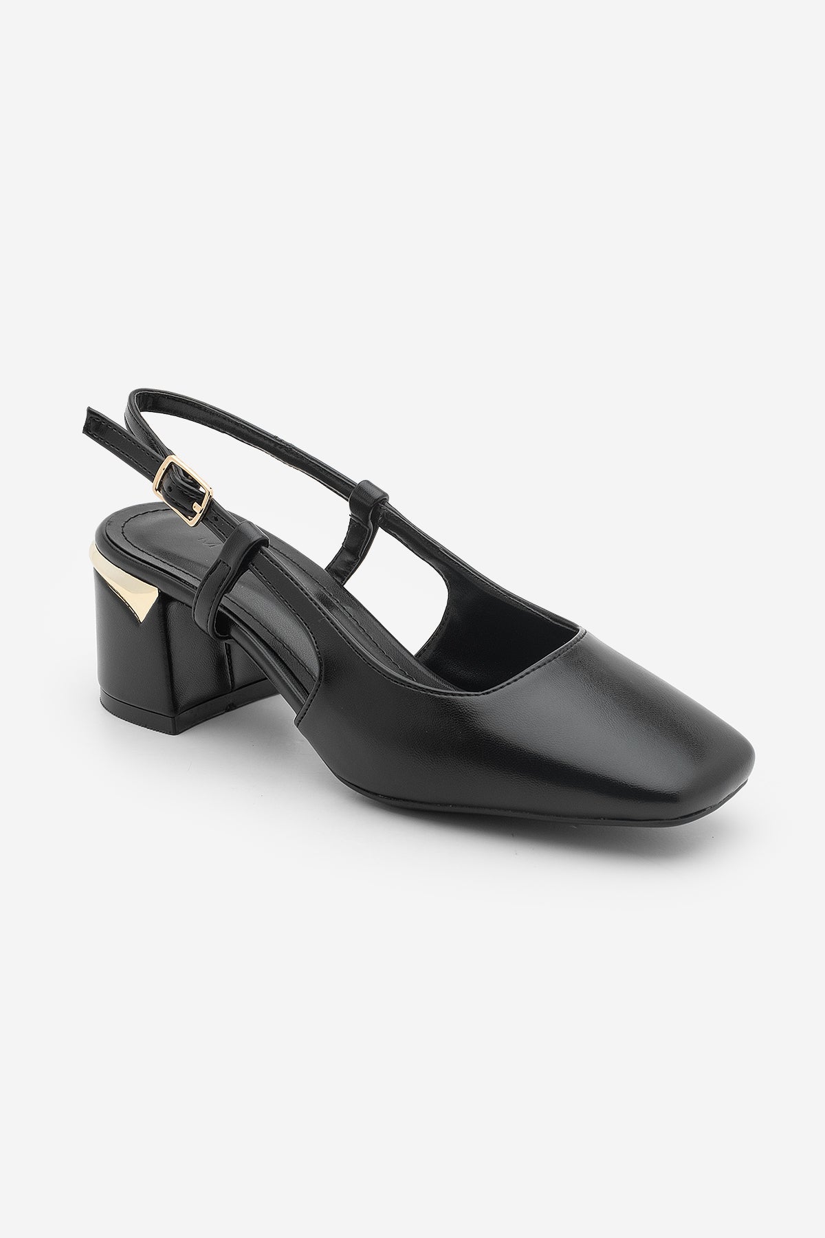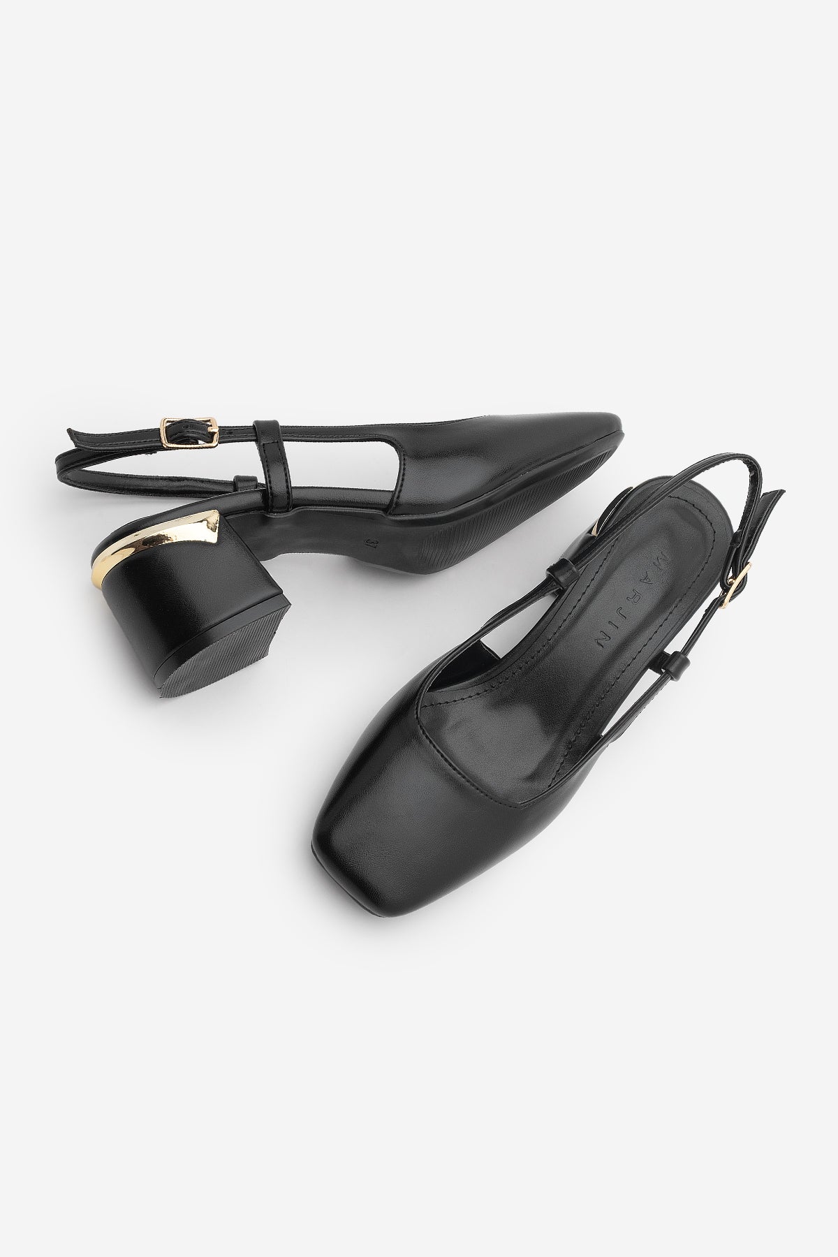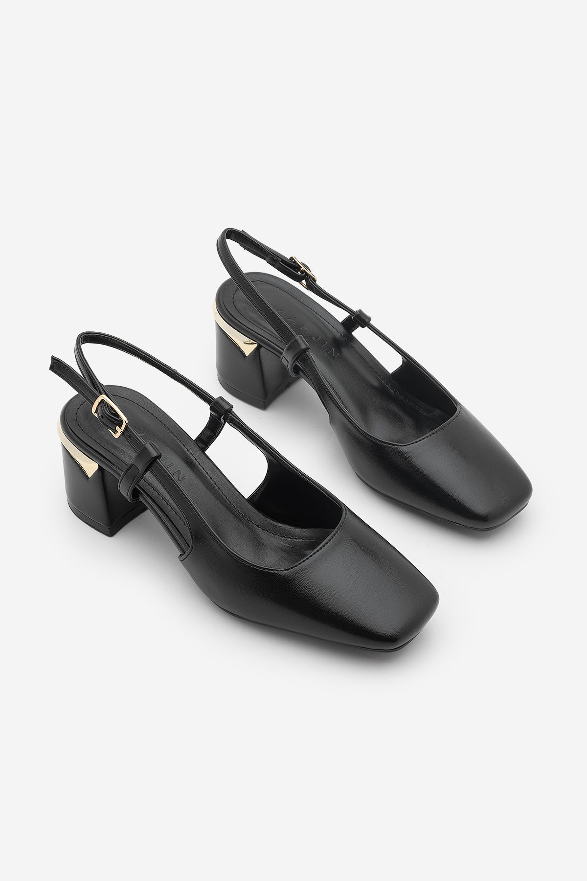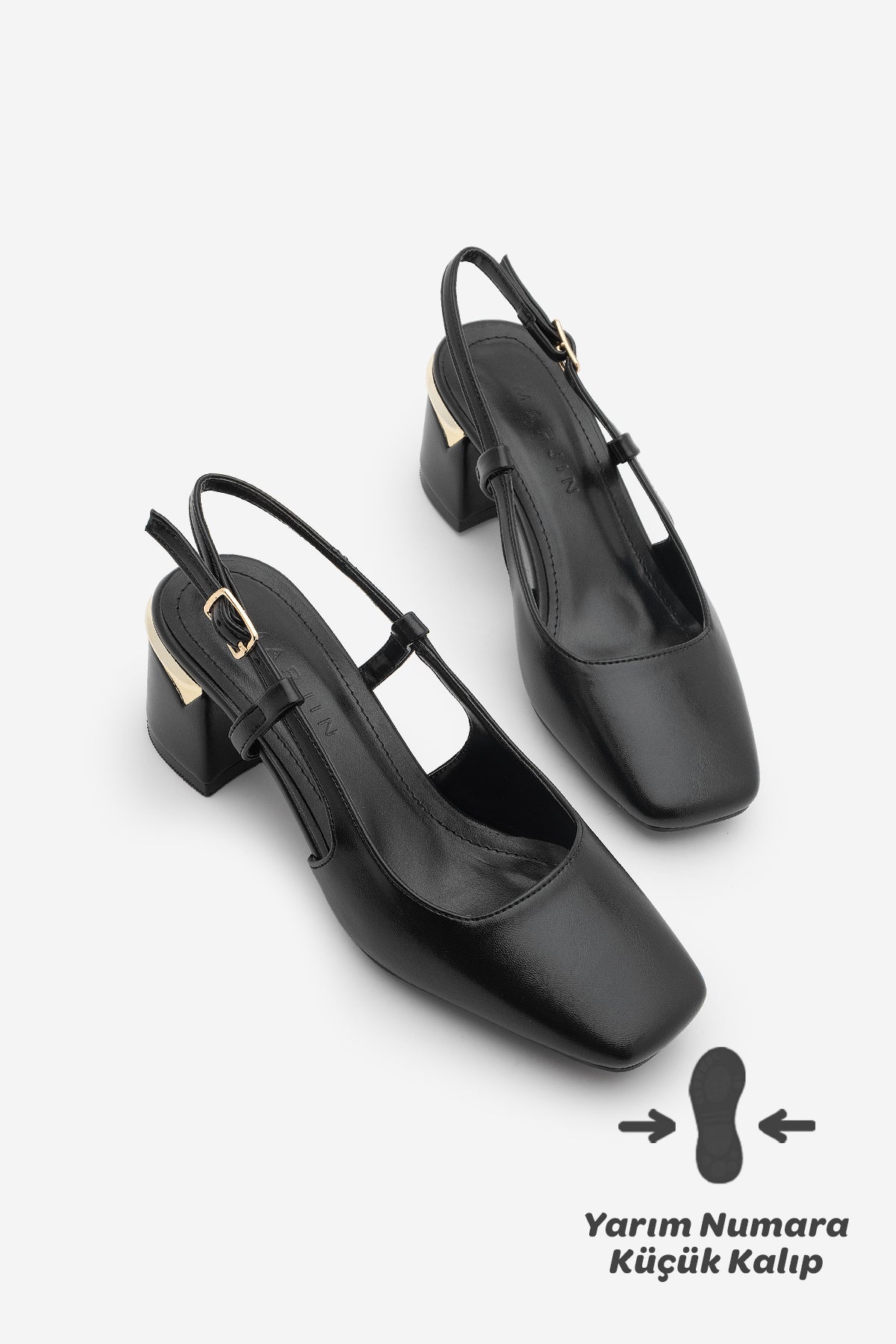 Kadın Kalın Topuk Küt Burun Klasik Topuklu Ayakkabı Likay - Siyah