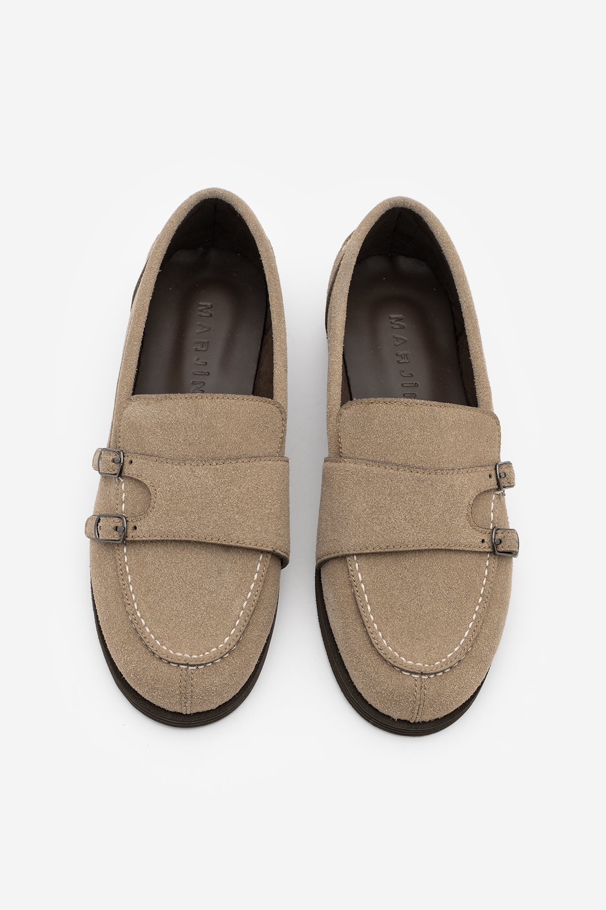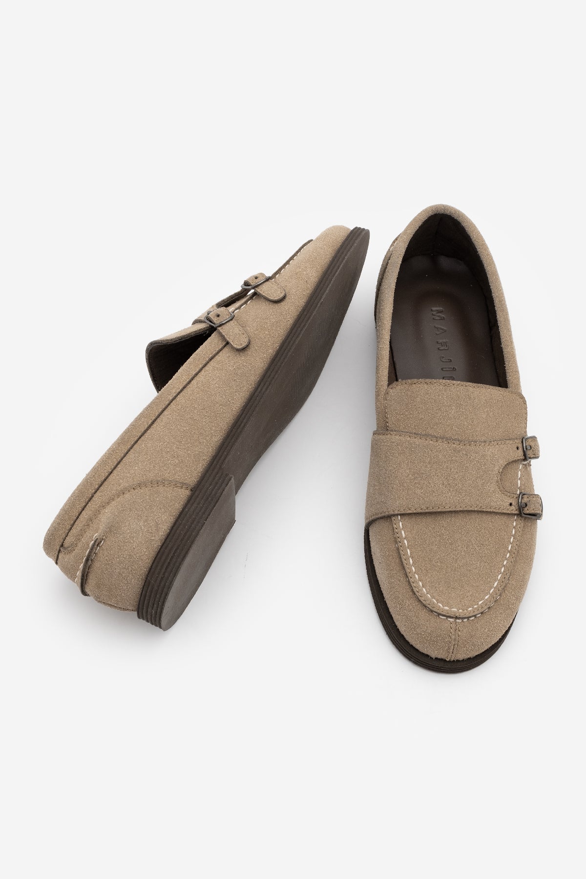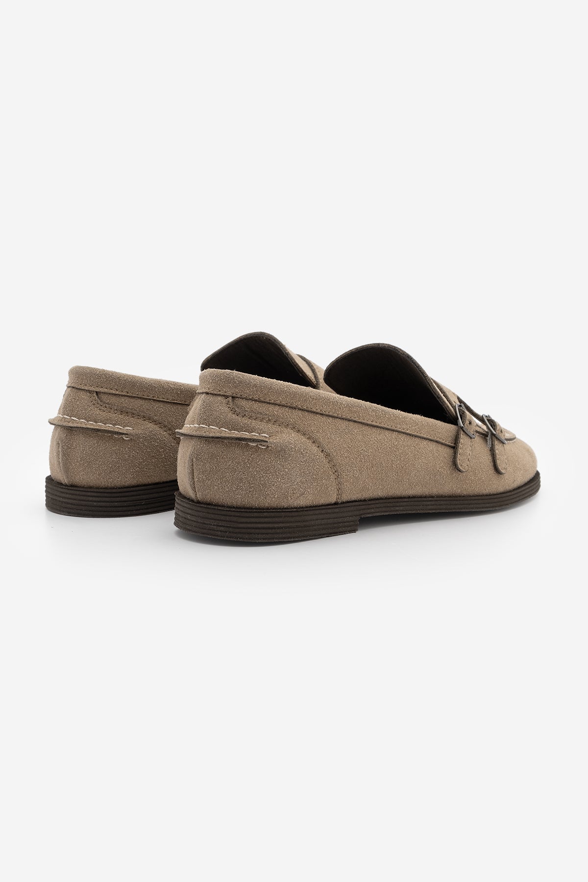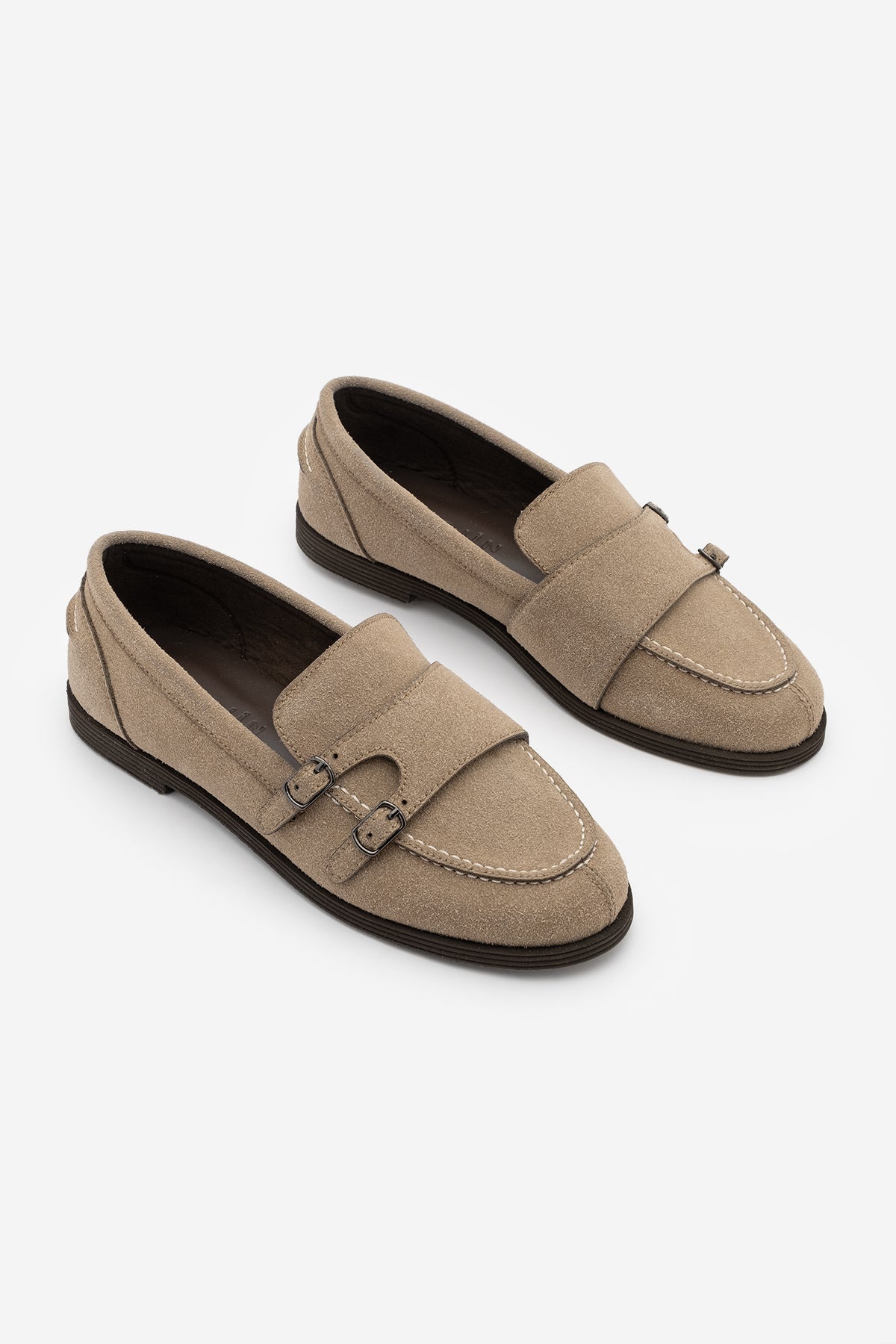 Kadın Loafer Tokalı Çift Bantlı Günlük Ayakkabı Ovora - Bej Süet