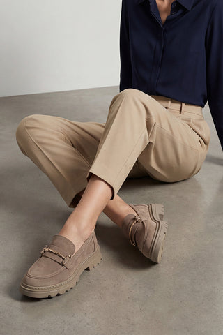 Kadın Hakiki Deri Zincirli Loafer Ayakkabı Tanle - Bej Süet