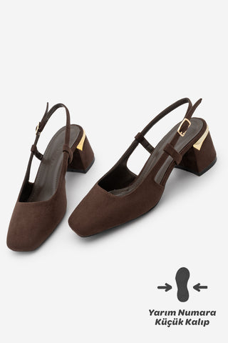 Kadın Kalın Topuk Küt Burun Klasik Topuklu Ayakkabı Likay - Kahve Süet