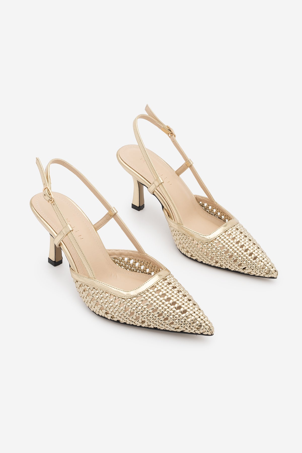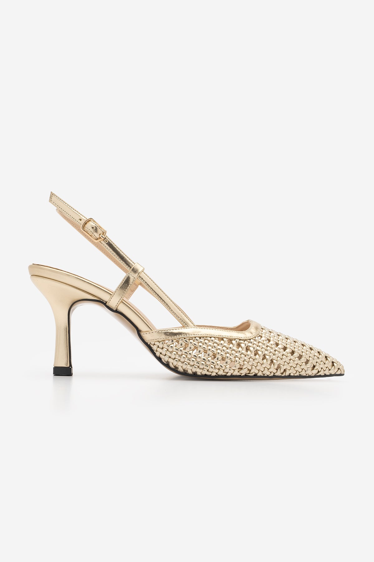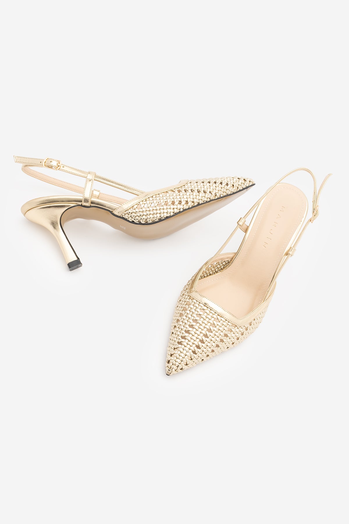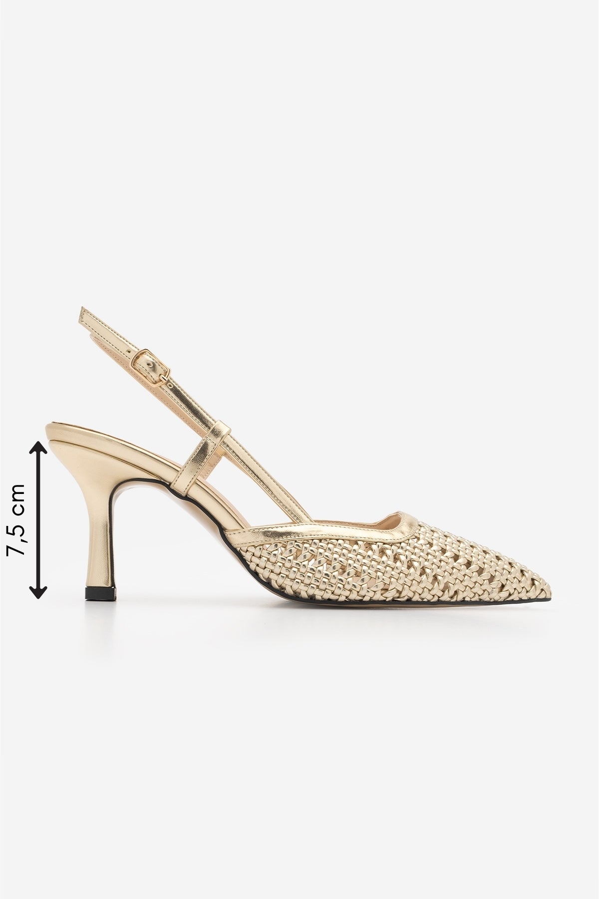 Kadın Stiletto Sivri Burun El Örgüsü Klasik Topuklu Ayakkabı Reveno - Altın