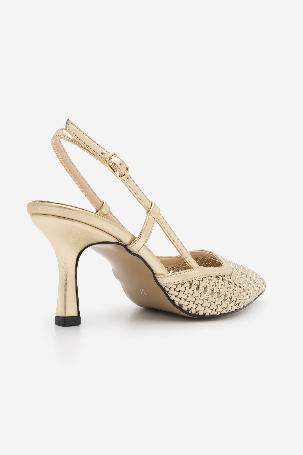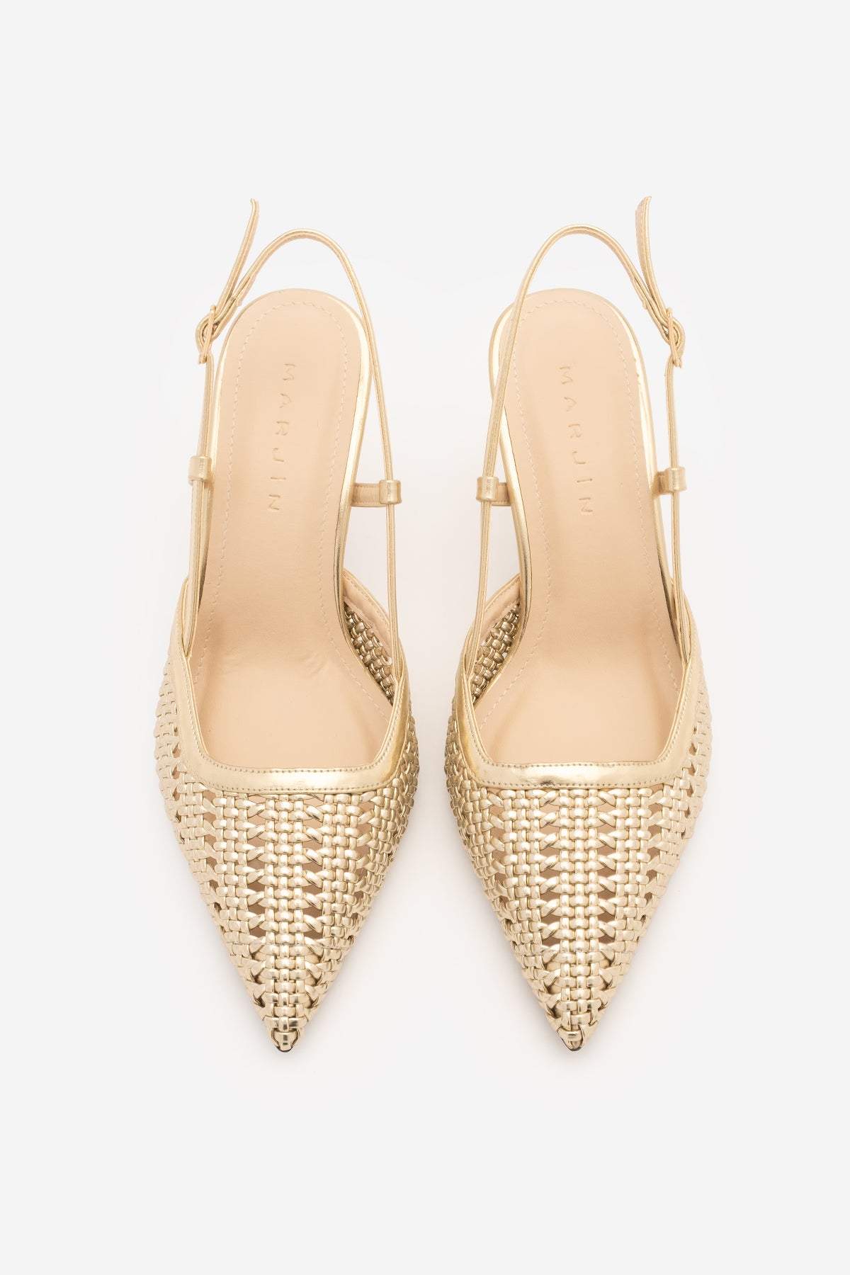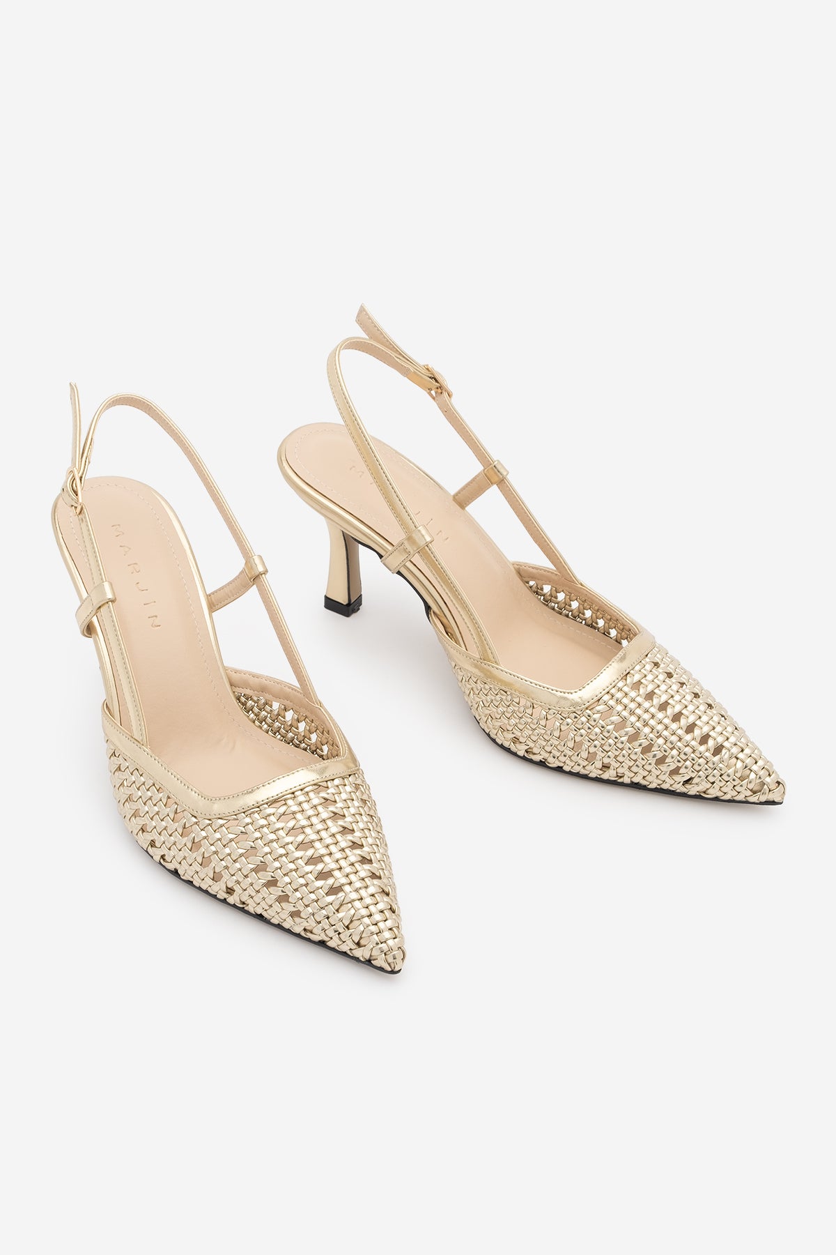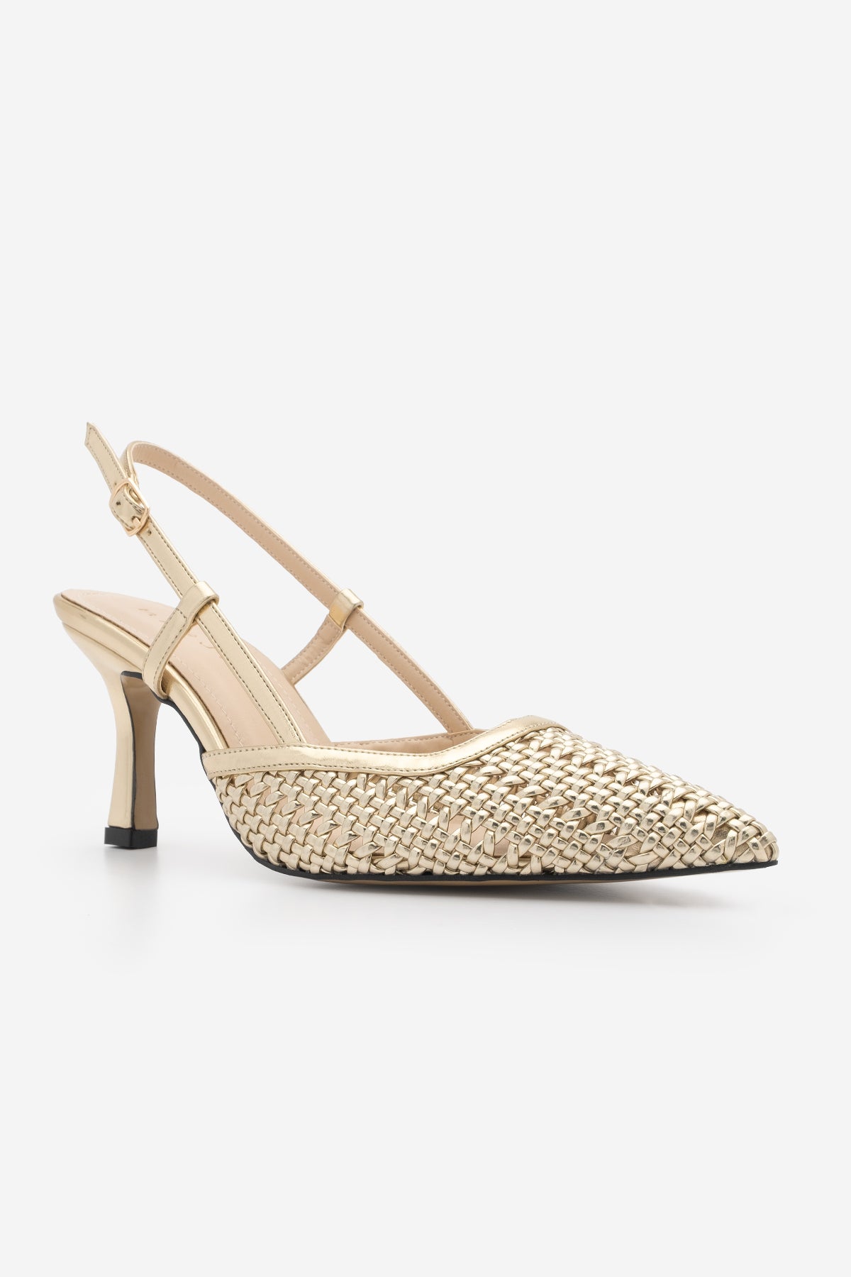Kadın Stiletto Sivri Burun El Örgüsü Klasik Topuklu Ayakkabı Reveno - Altın