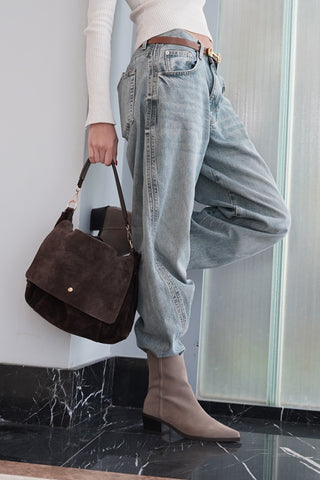 Kadın Hakiki Deri Omuz Çantası Yorita - Vizon Süet