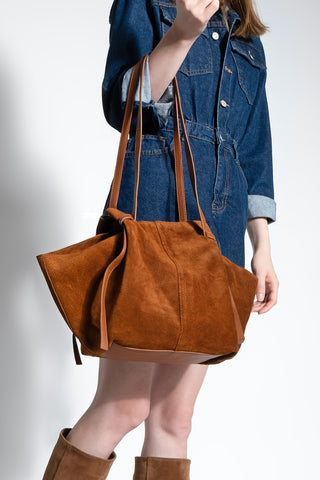 Kadın Hakiki Deri Omuz Çantası Yorita - Taba Süet