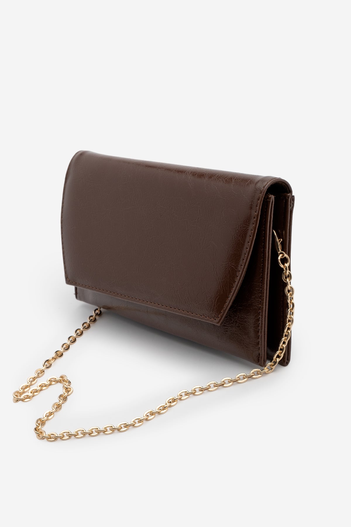 Kadın Gold Zincirli Abiye Clutch & Portföy El Ve Omuz Çantası Noreva - Kahve