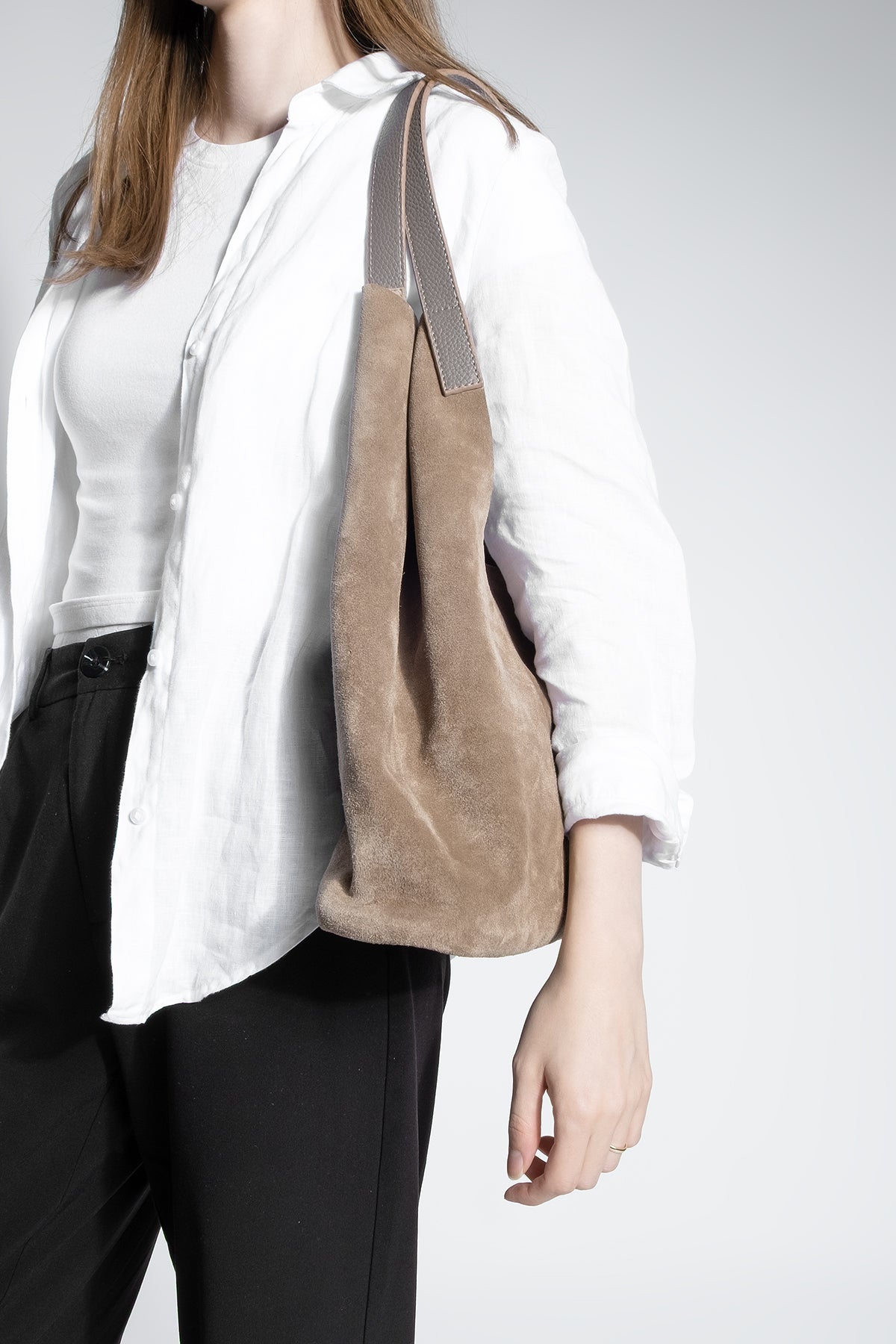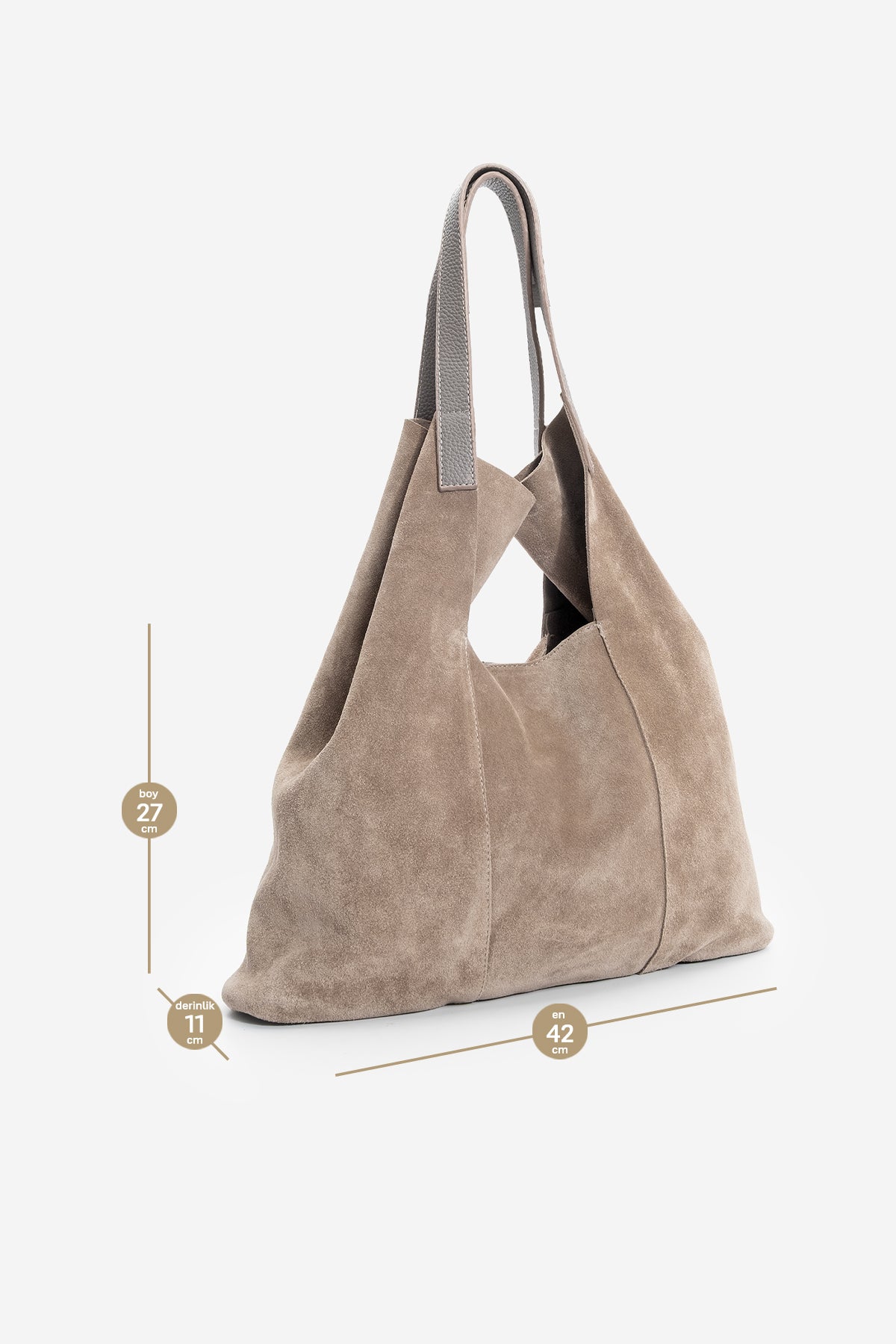 Kadın Hakiki Deri Omuz Çantası Filun - Vizon Süet
