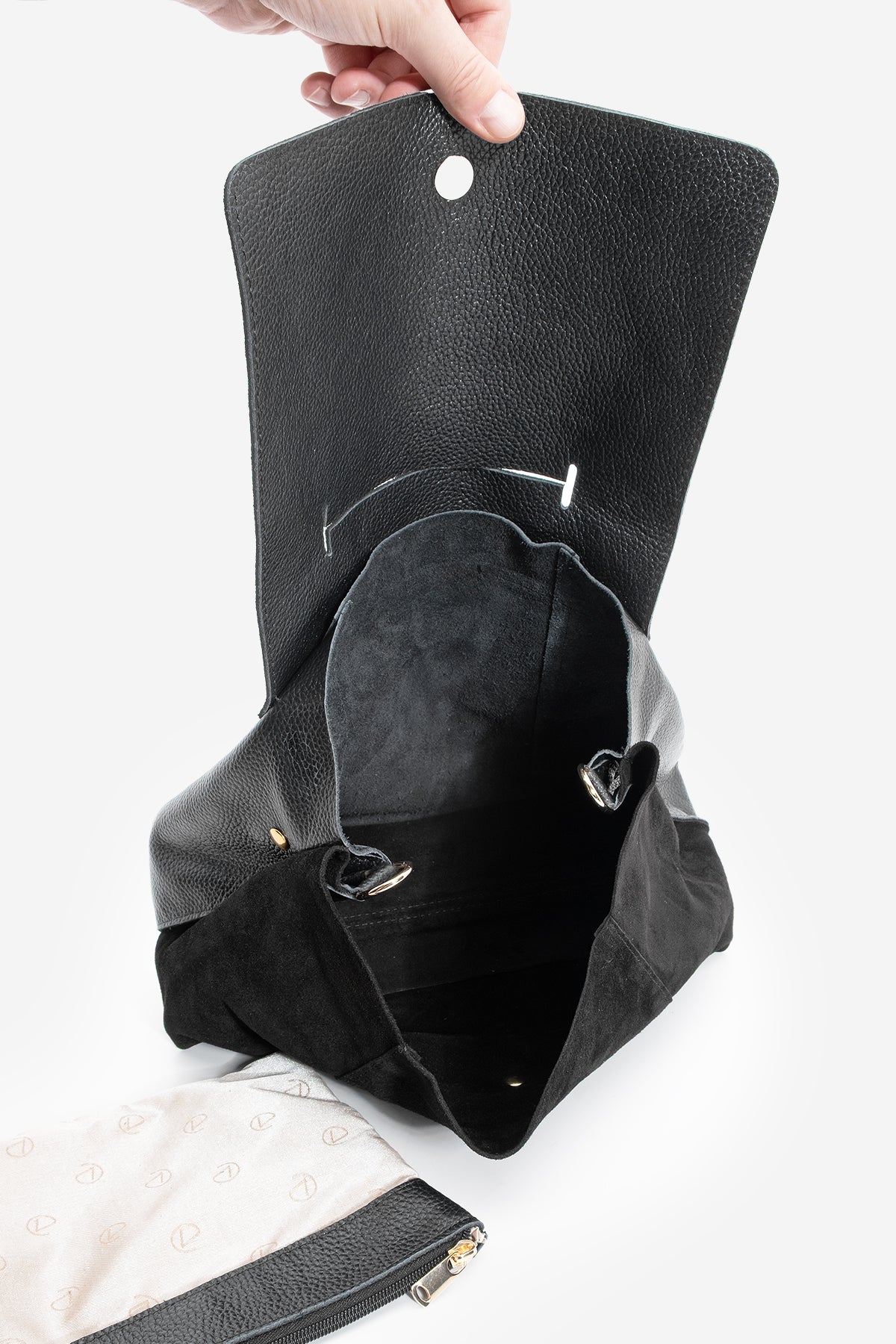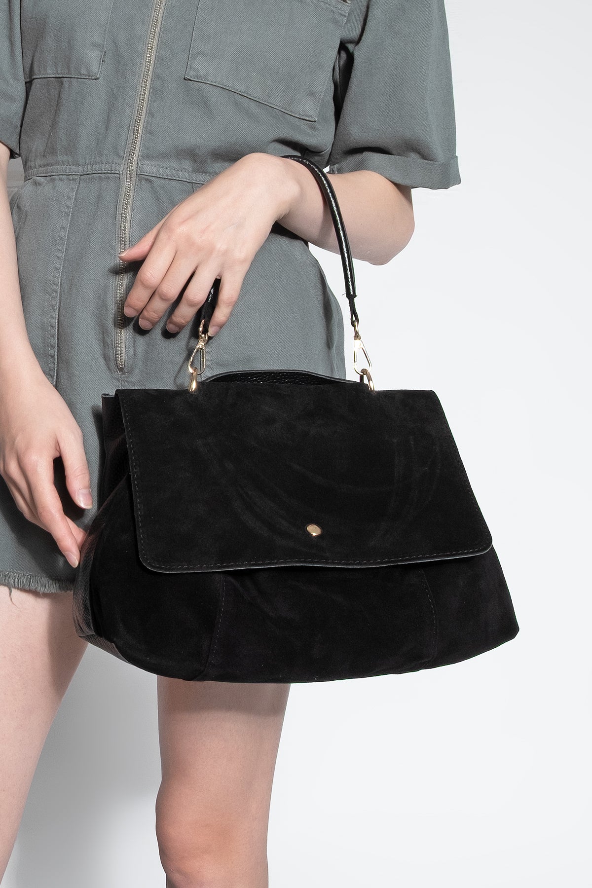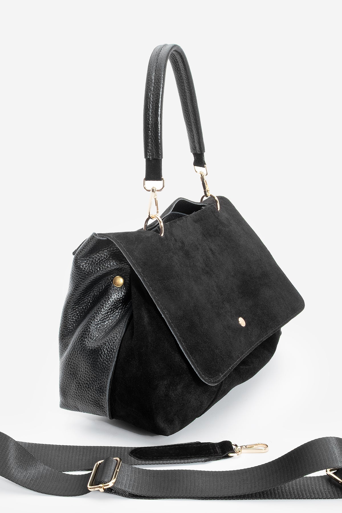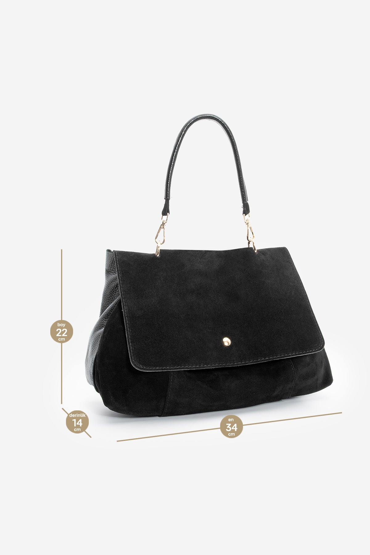 Kadın Hakiki Deri Omuz Çantası Ornis - Siyah Süet