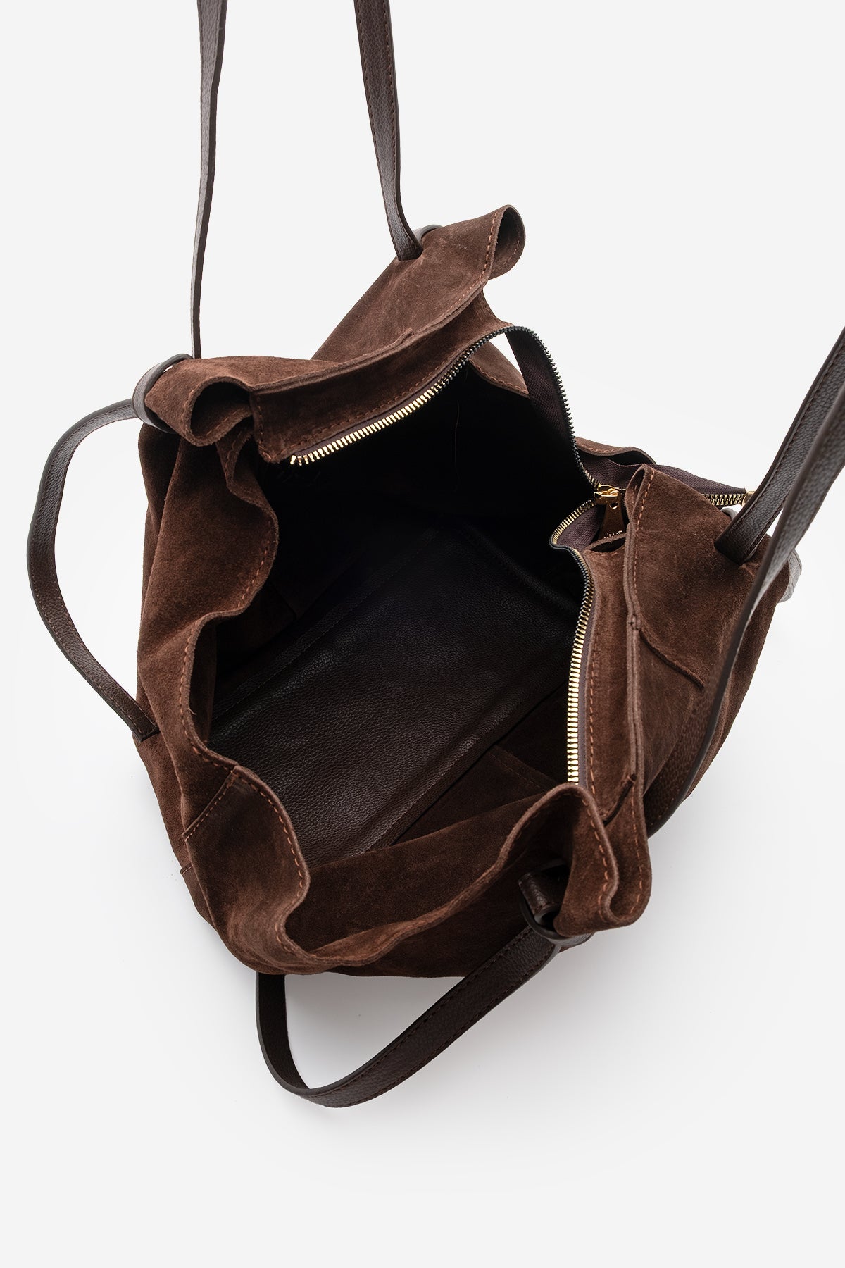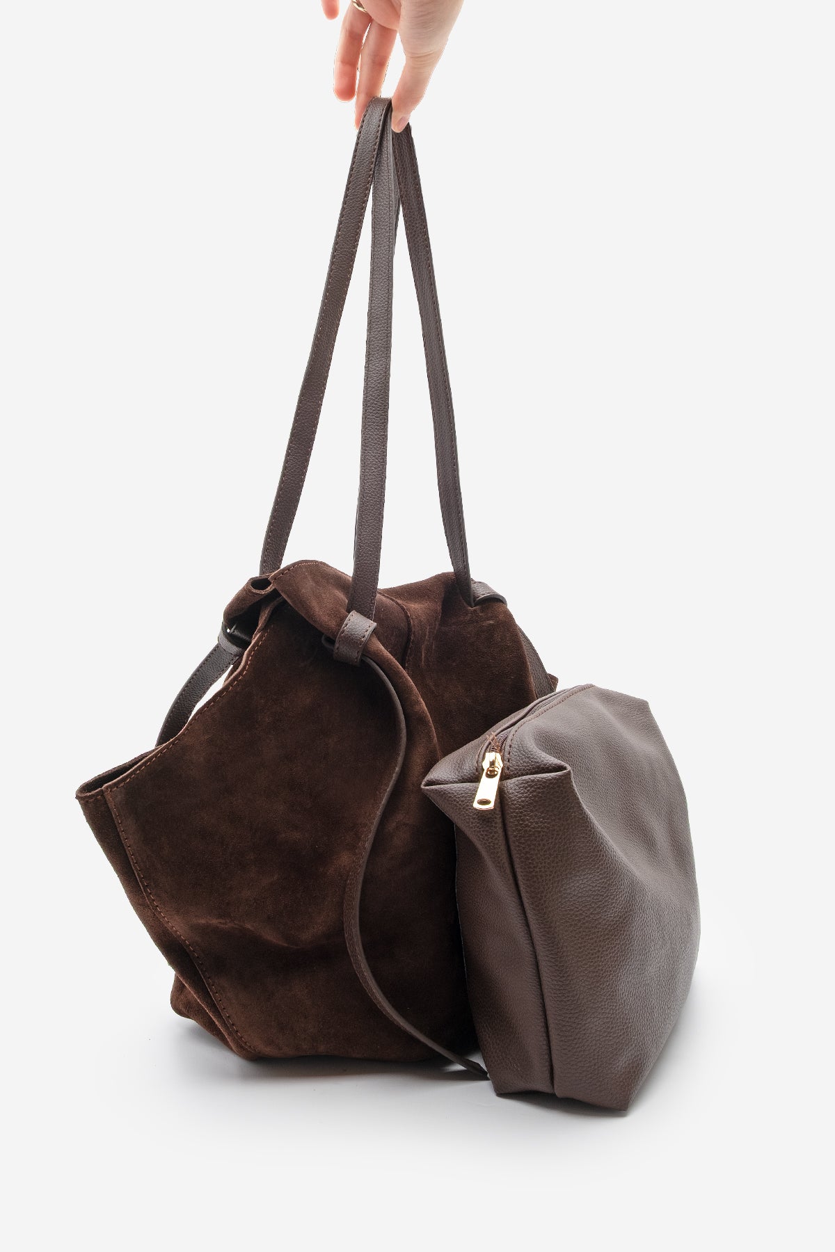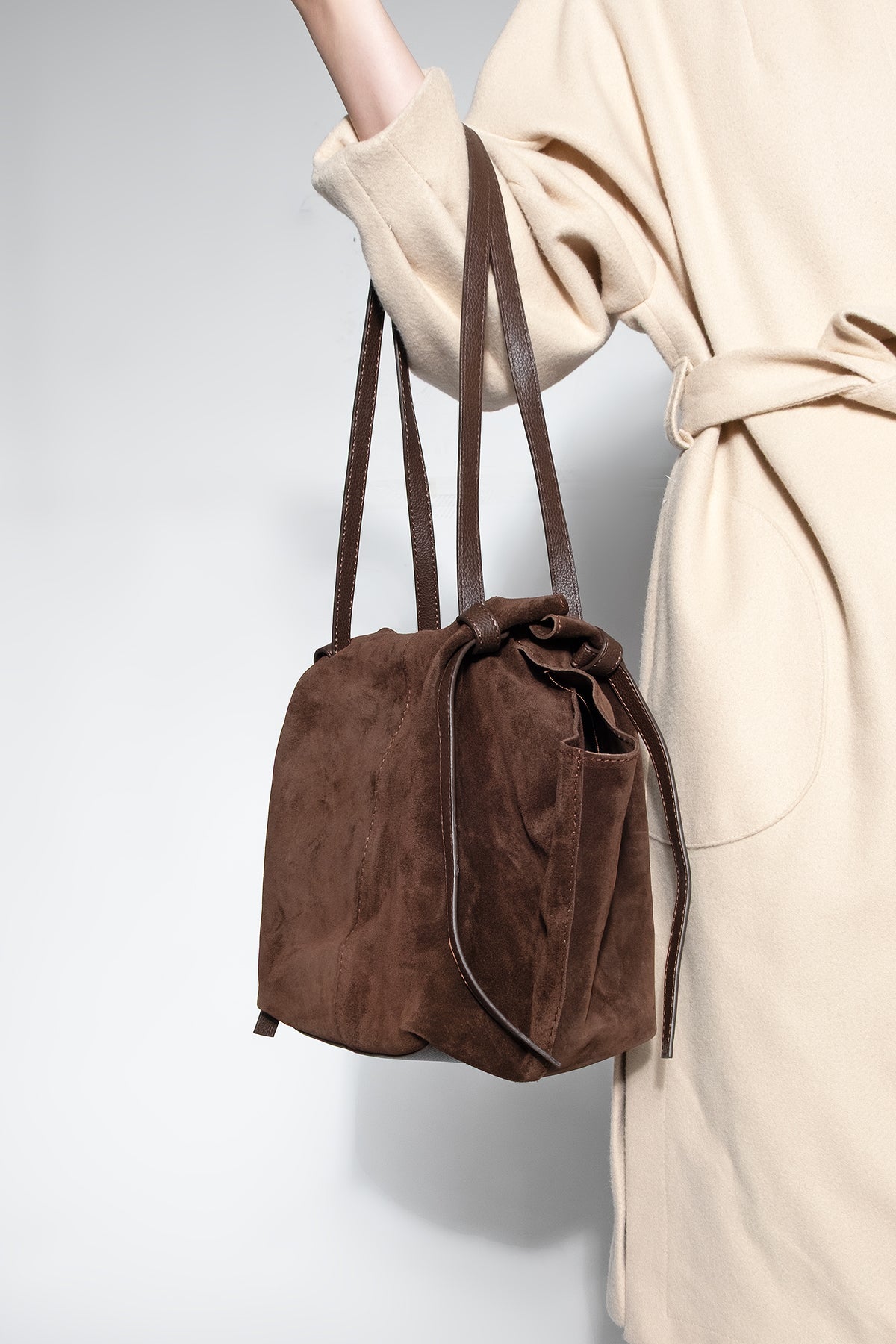 Kadın Hakiki Deri Omuz Çantası Yorita - Kahve Süet