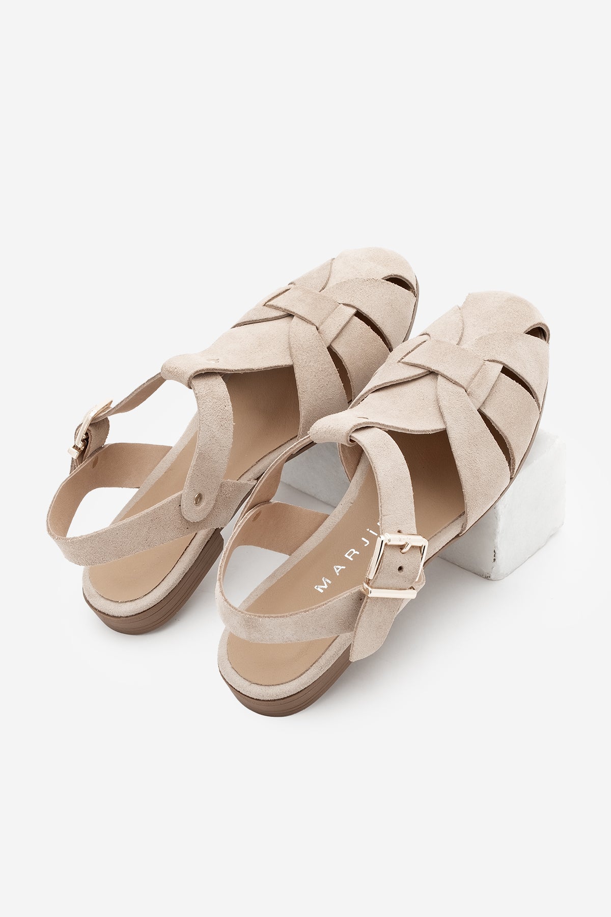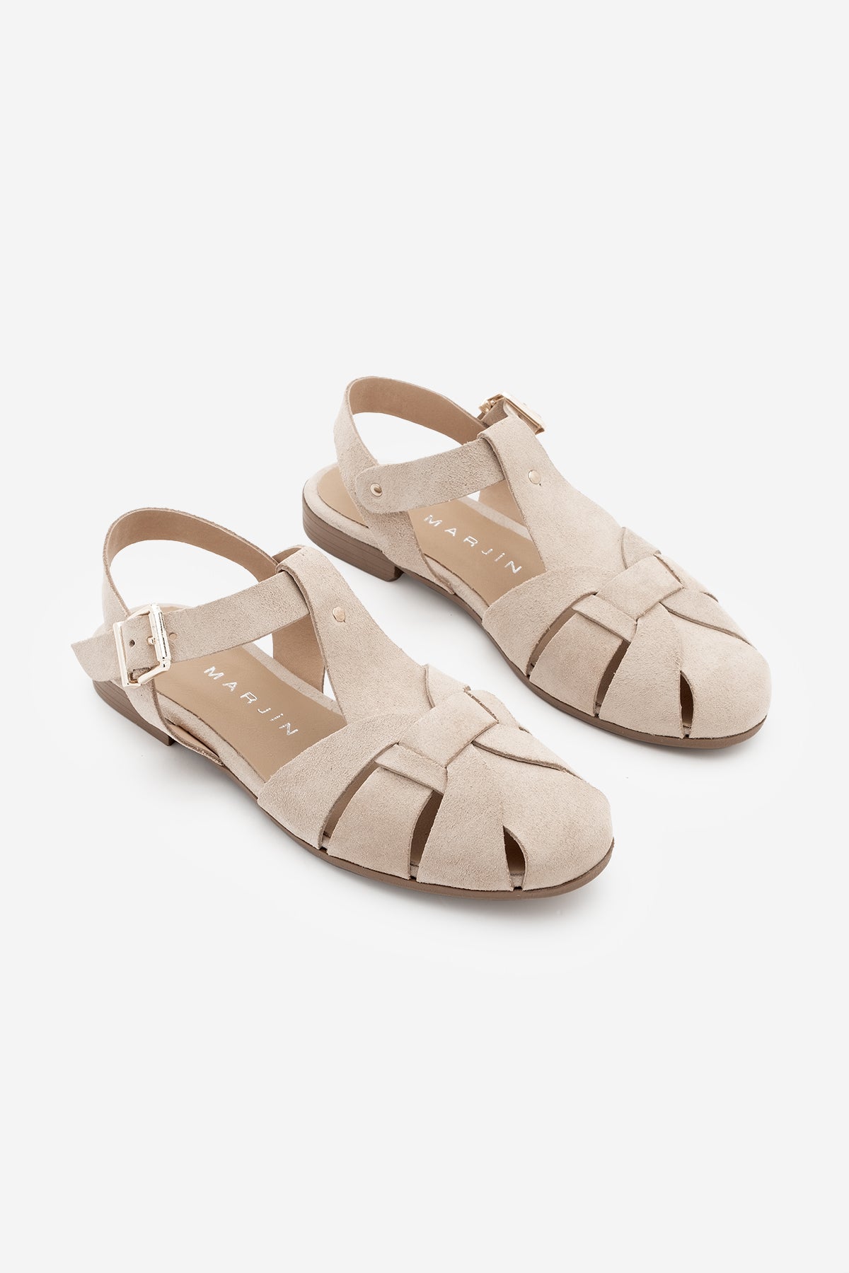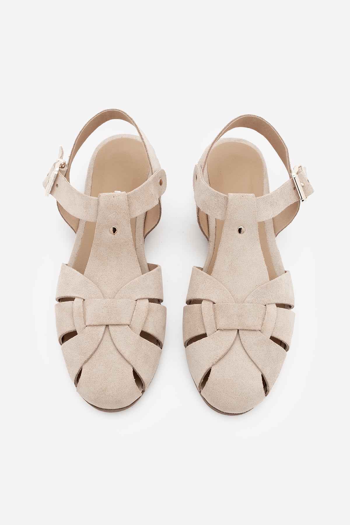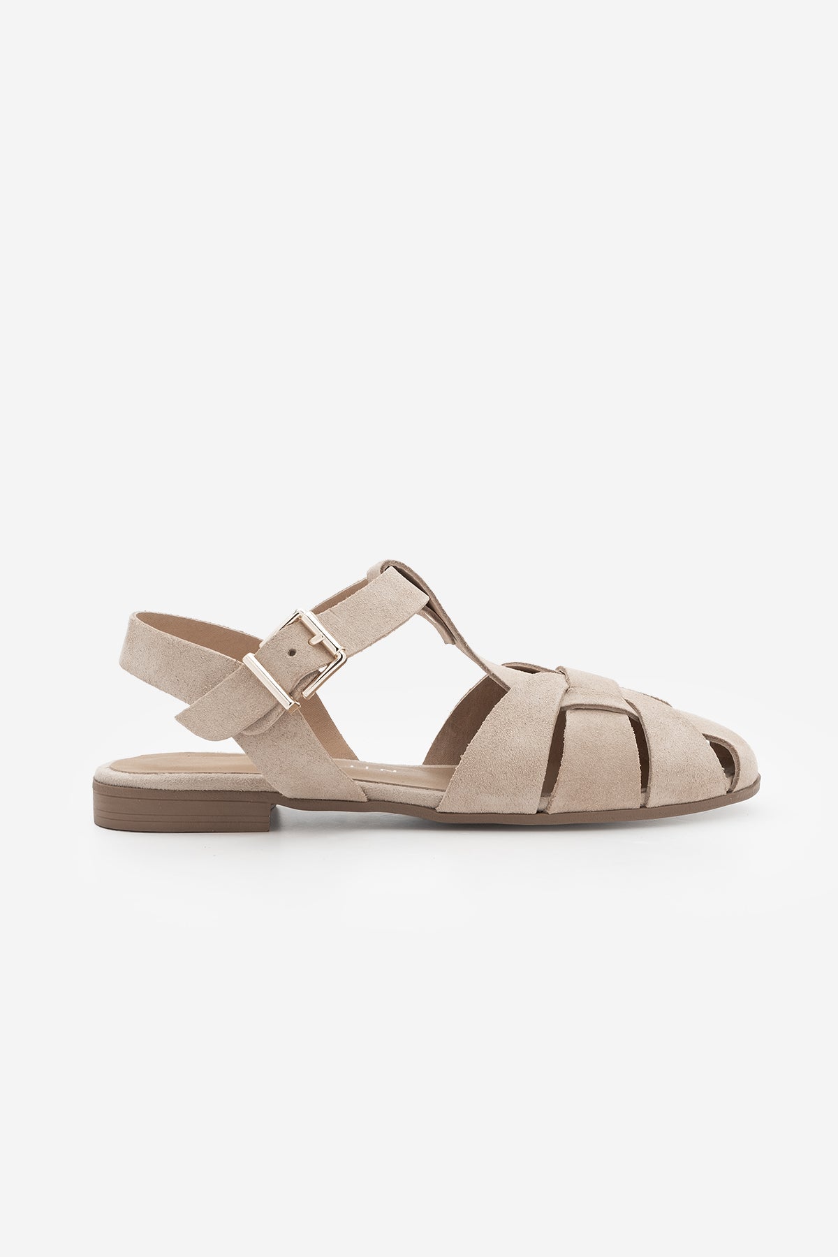 Kadın Hakiki Deri Önü Kapalı Günlük Sandalet Yenzar - Bej Süet