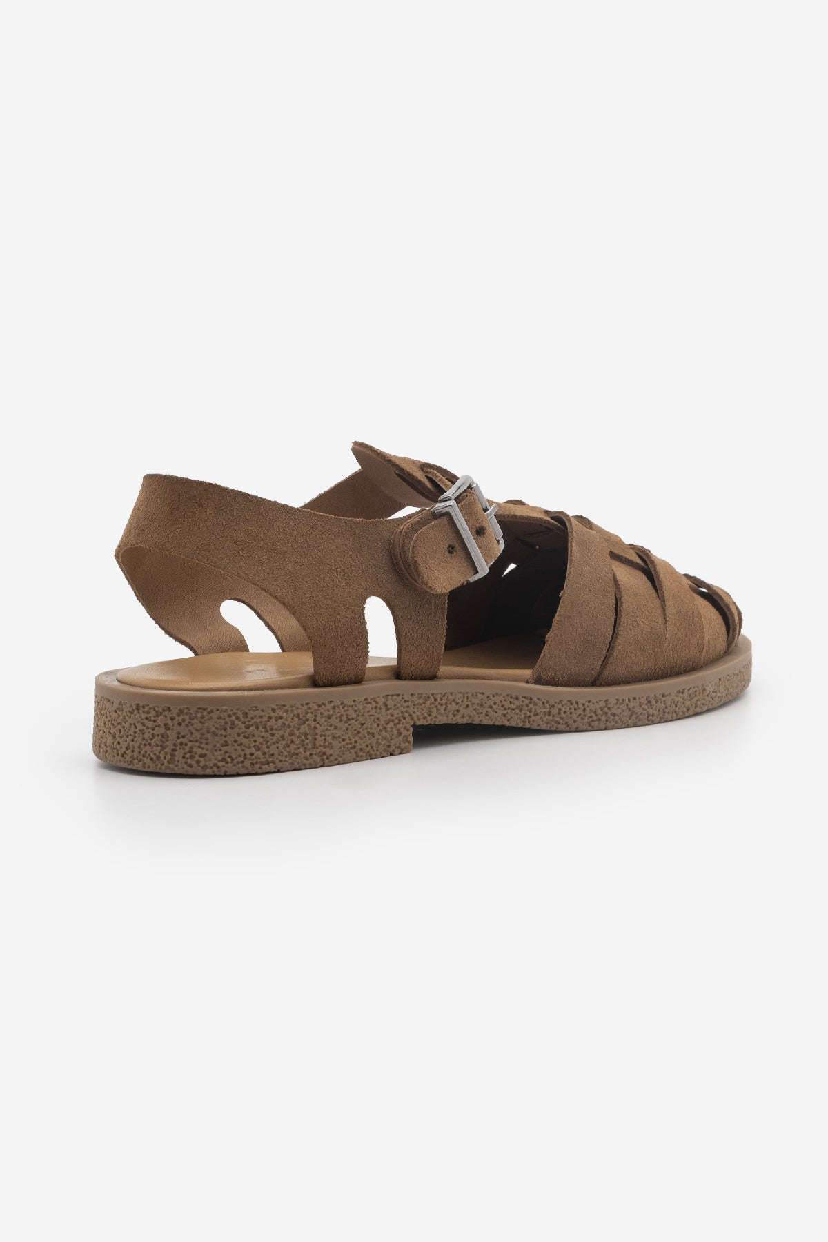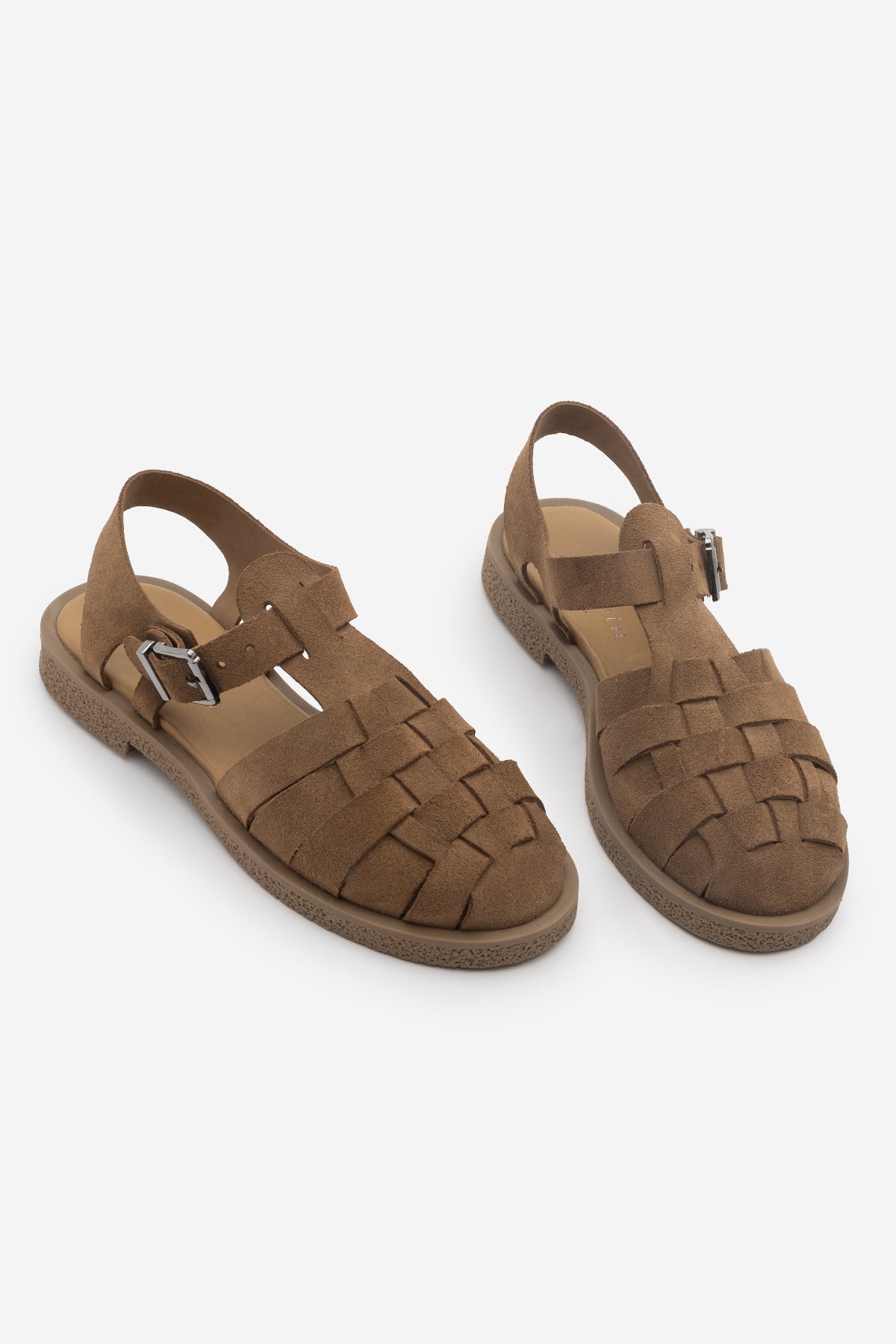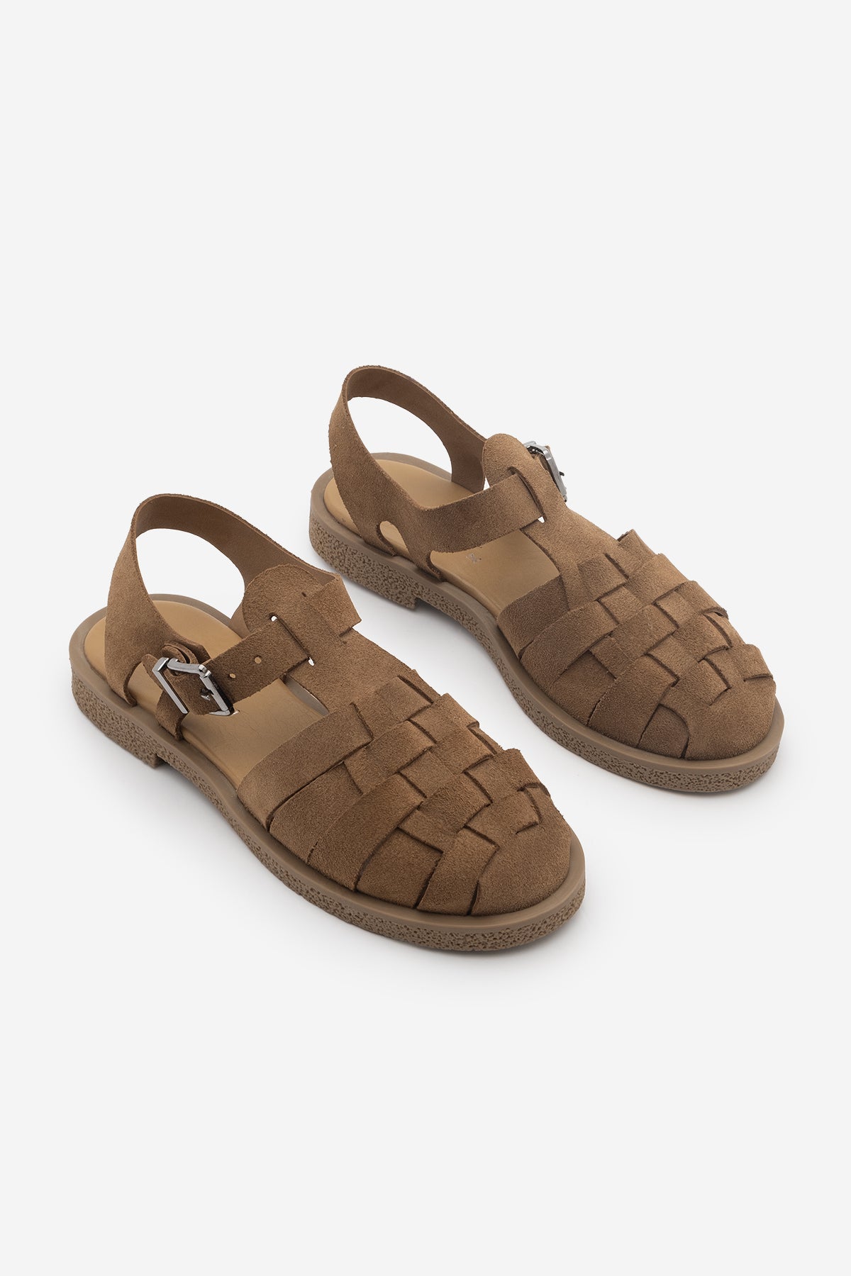 Kadın Hakiki Deri Önü Kapalı Günlük Sandalet Vesola - Camel Süet