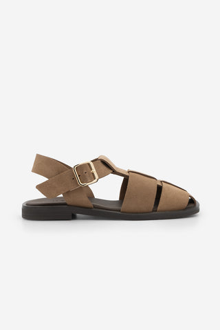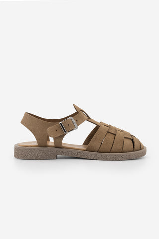 Kadın Hakiki Deri Önü Kapalı Günlük Sandalet Vesola - Toprak Süet