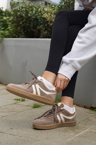 Kadın Sneaker Bağcıklı Spor Ayakkabı Tiyone - Vizon Süet