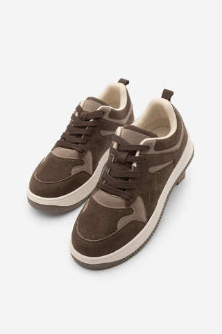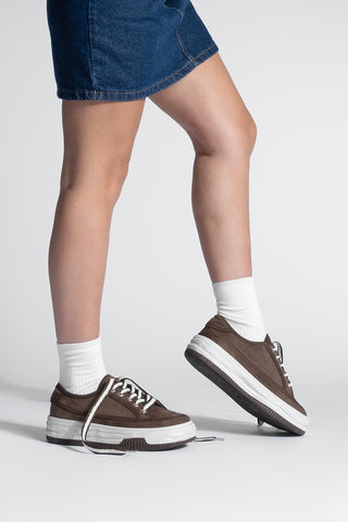 Kadın Sneaker Kalın Taban Spor Ayakkabı Aryan - Kahve Süet