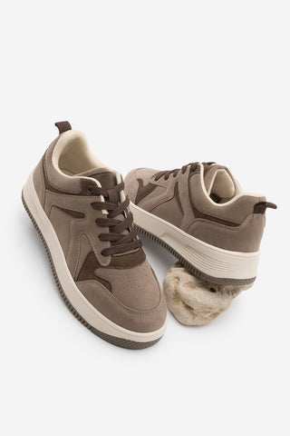Kadın Sneaker Kalın Taban Spor Ayakkabı Aryan - Vizon Süet