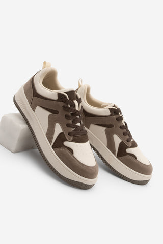 Kadın Sneaker Bağcıklı Spor Ayakkabı Tiyone - Kahverengi