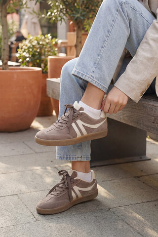 Kadın Sneaker Bağcıklı Spor Ayakkabı Tiyone - Vizon Süet