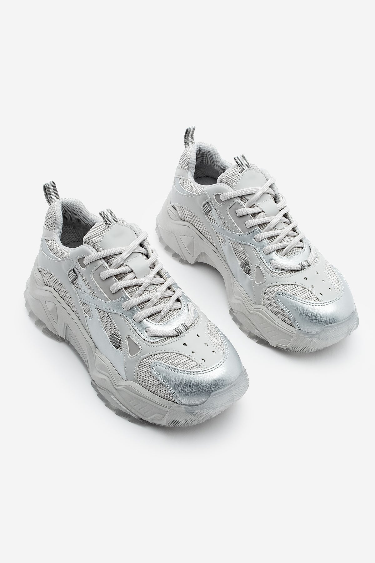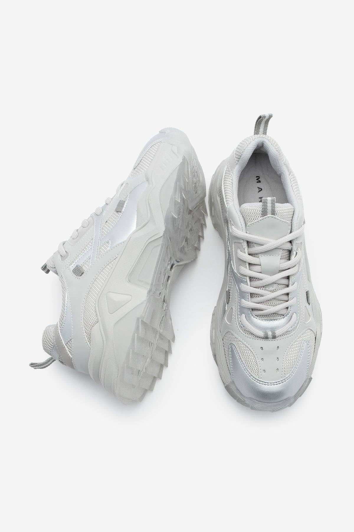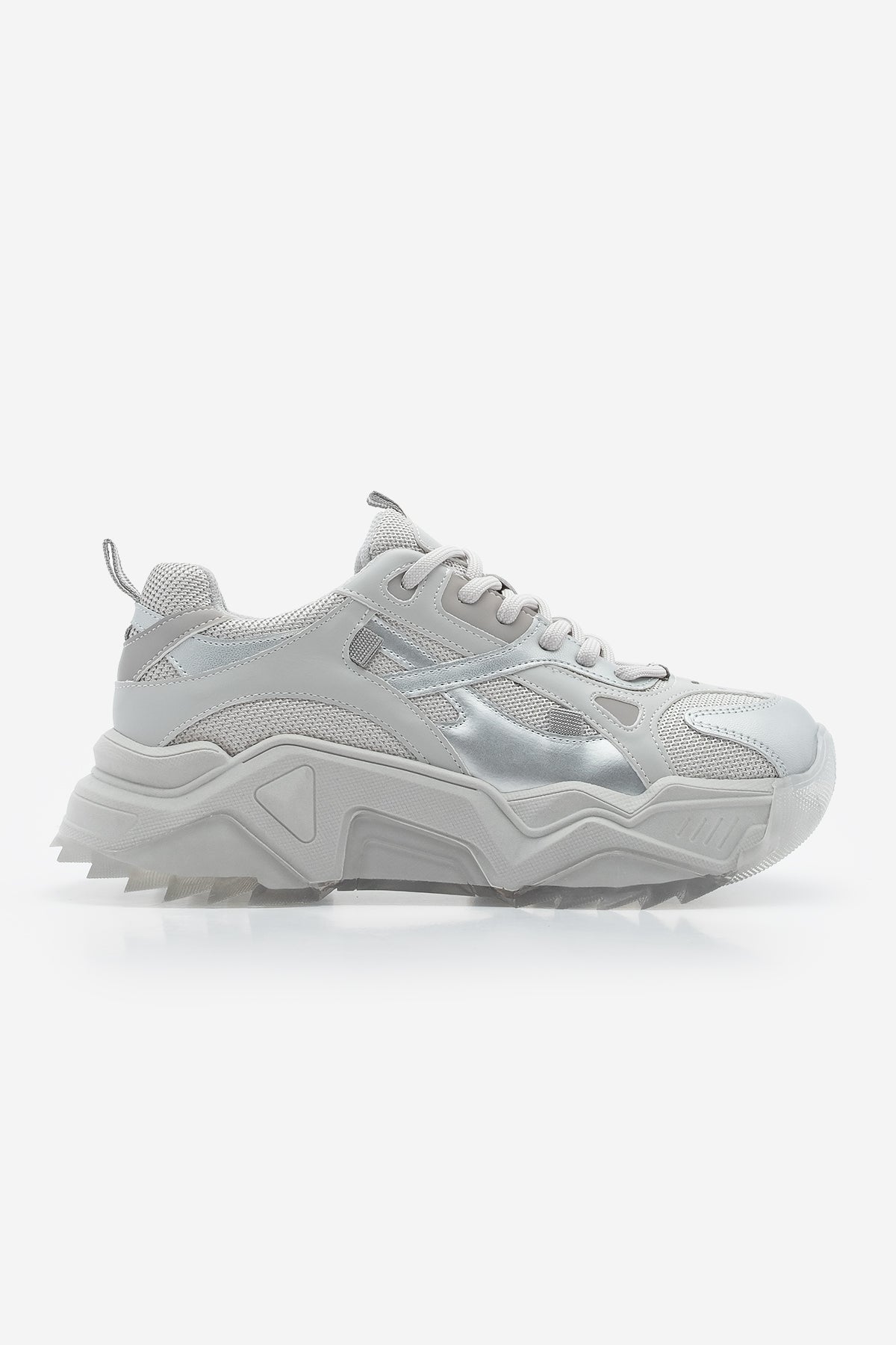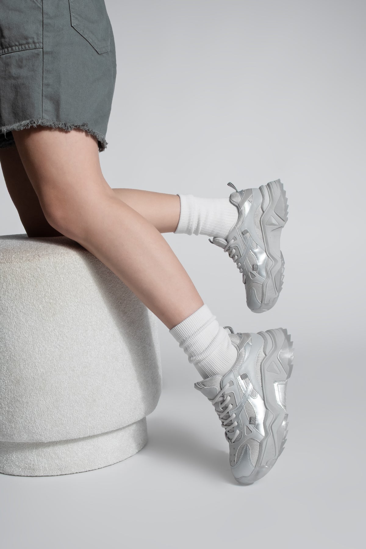 Kadın Sneaker Bağcıklı Spor Ayakkabı Pizen - Gümüş