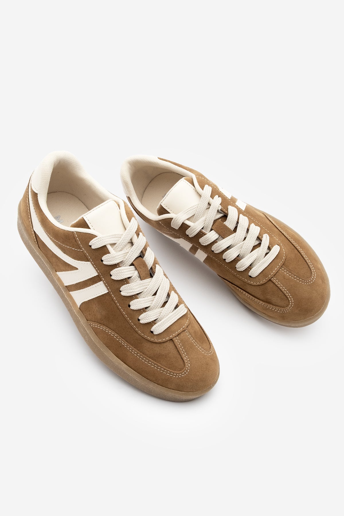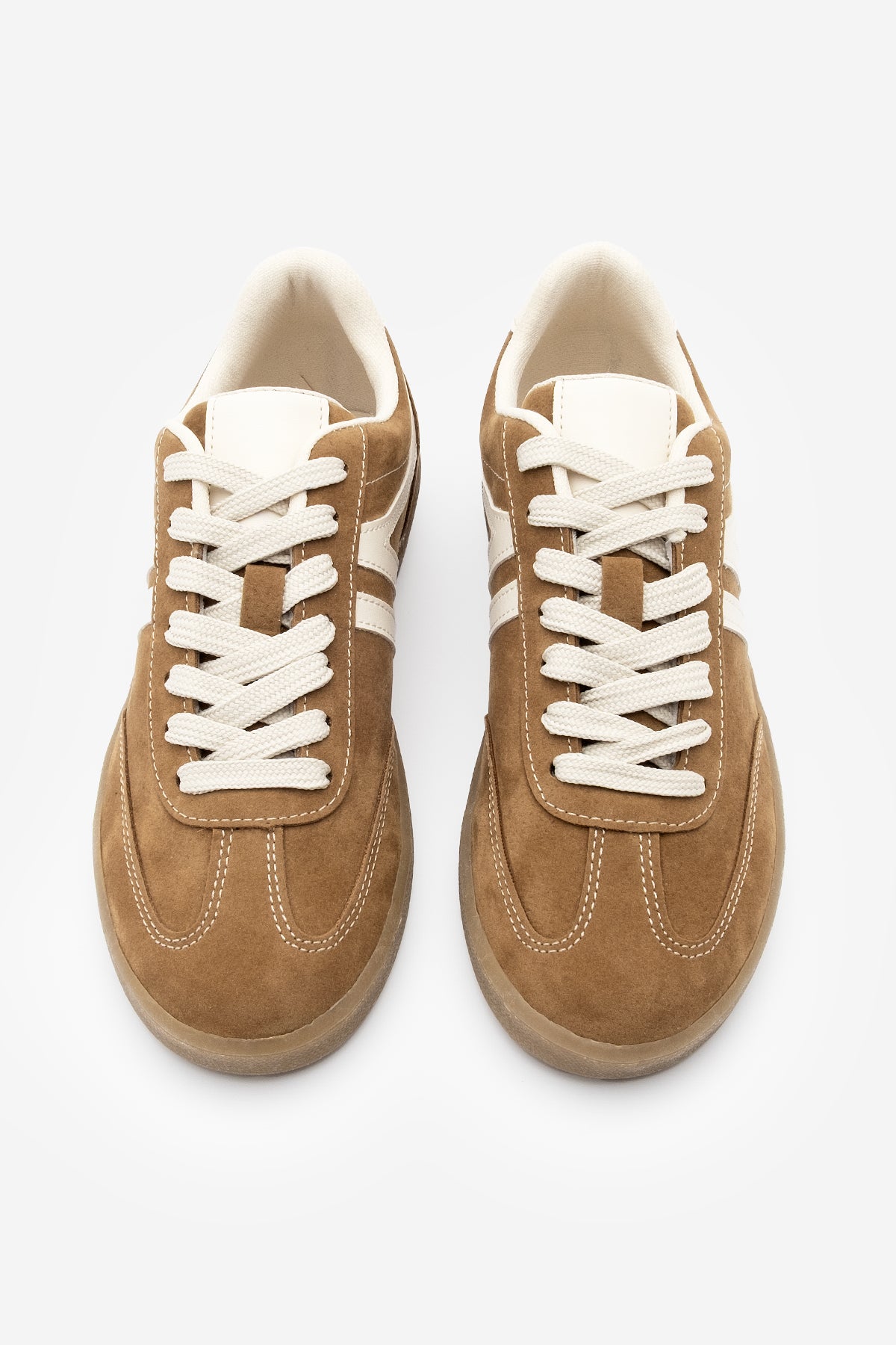 Kadın Sneaker Bağcıklı Spor Ayakkabı Tiyone - Taba Süet