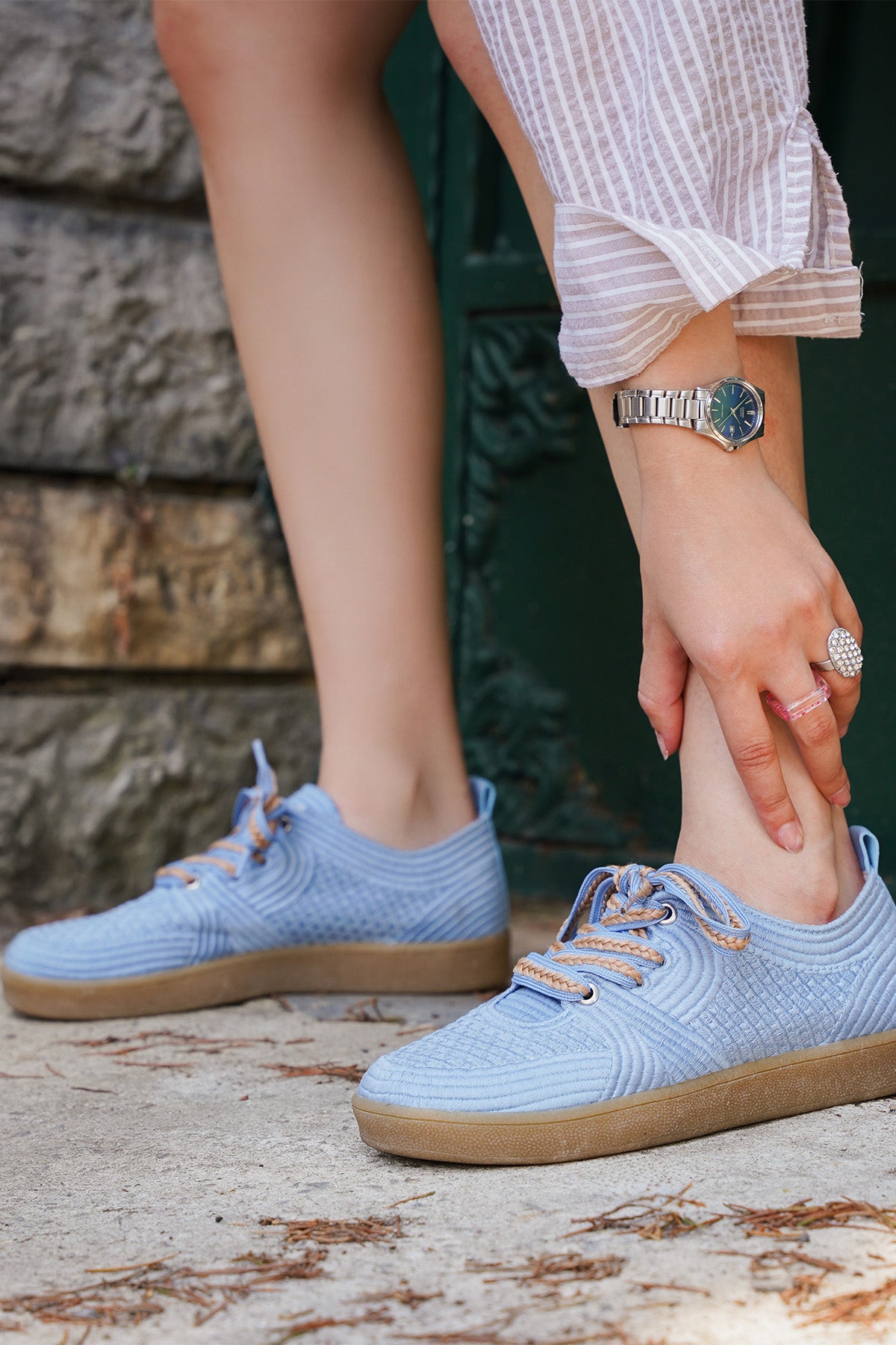 Kadın Sneaker İşlemeli Nakışlı Spor Ayakkabı Nolen - Mavi