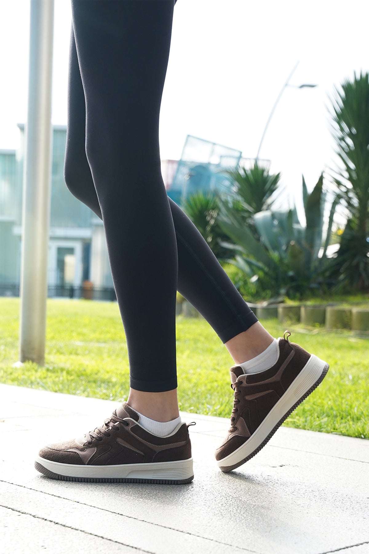 Kadın Sneaker Kalın Taban Spor Ayakkabı Aryan - Kahve Süet