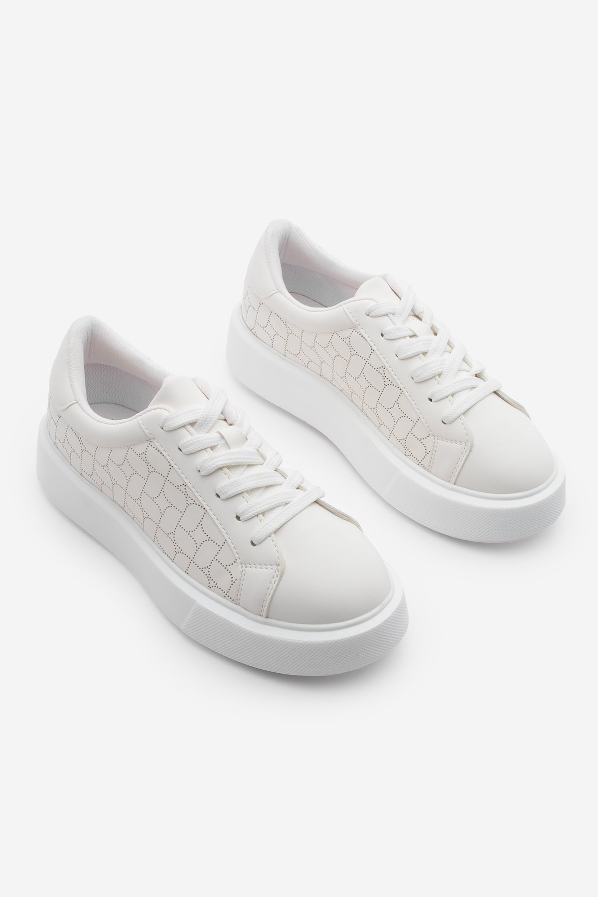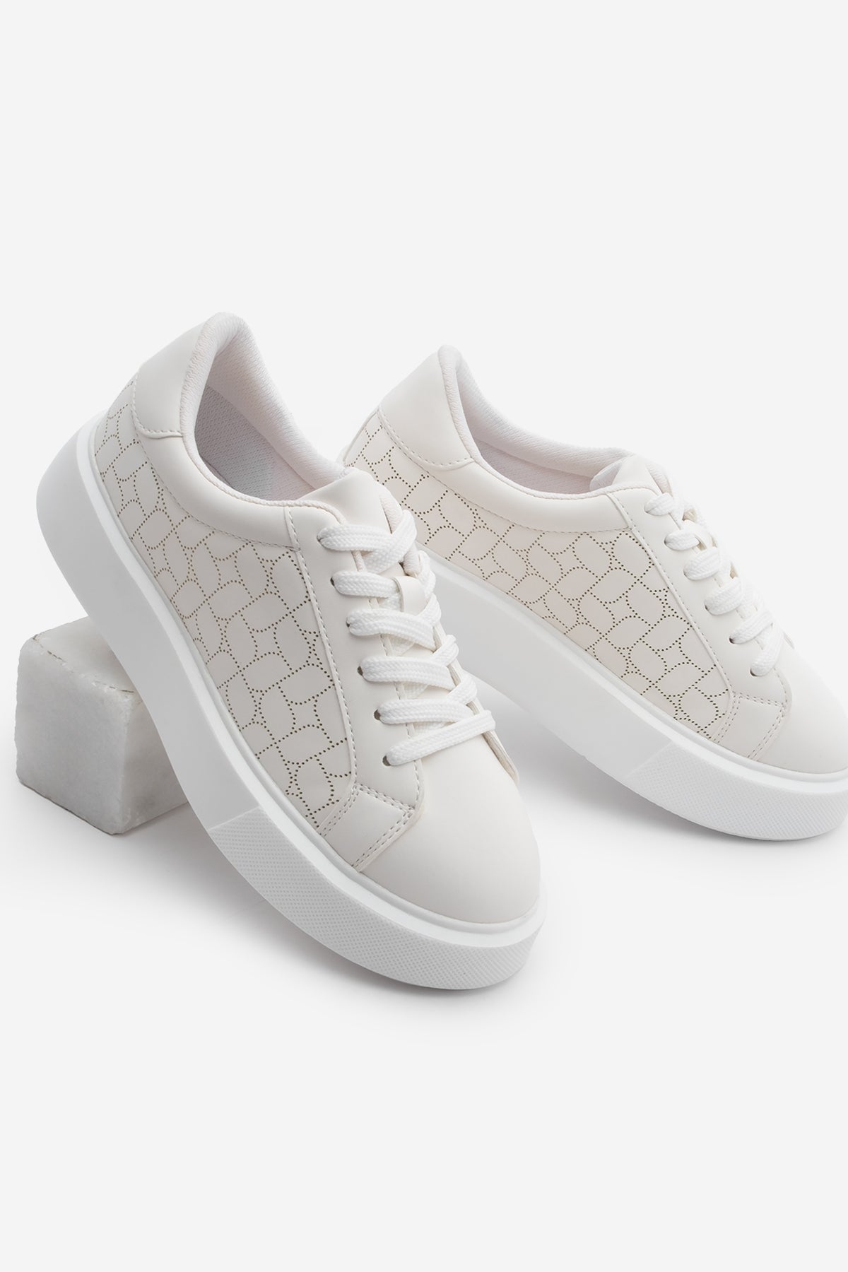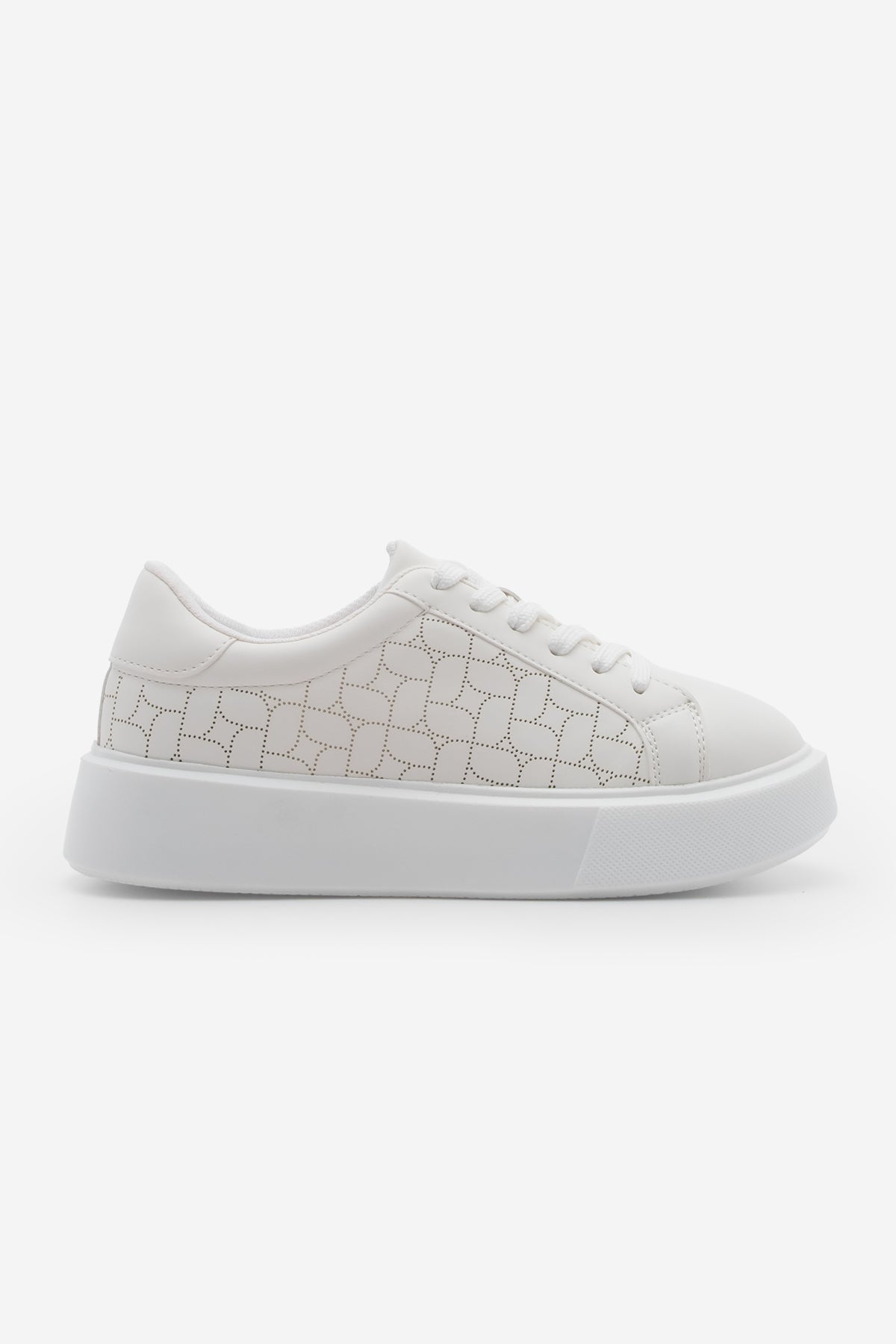 Kadın Sneaker Kalın Taban Desenli Spor Ayakkabı Linay - Beyaz