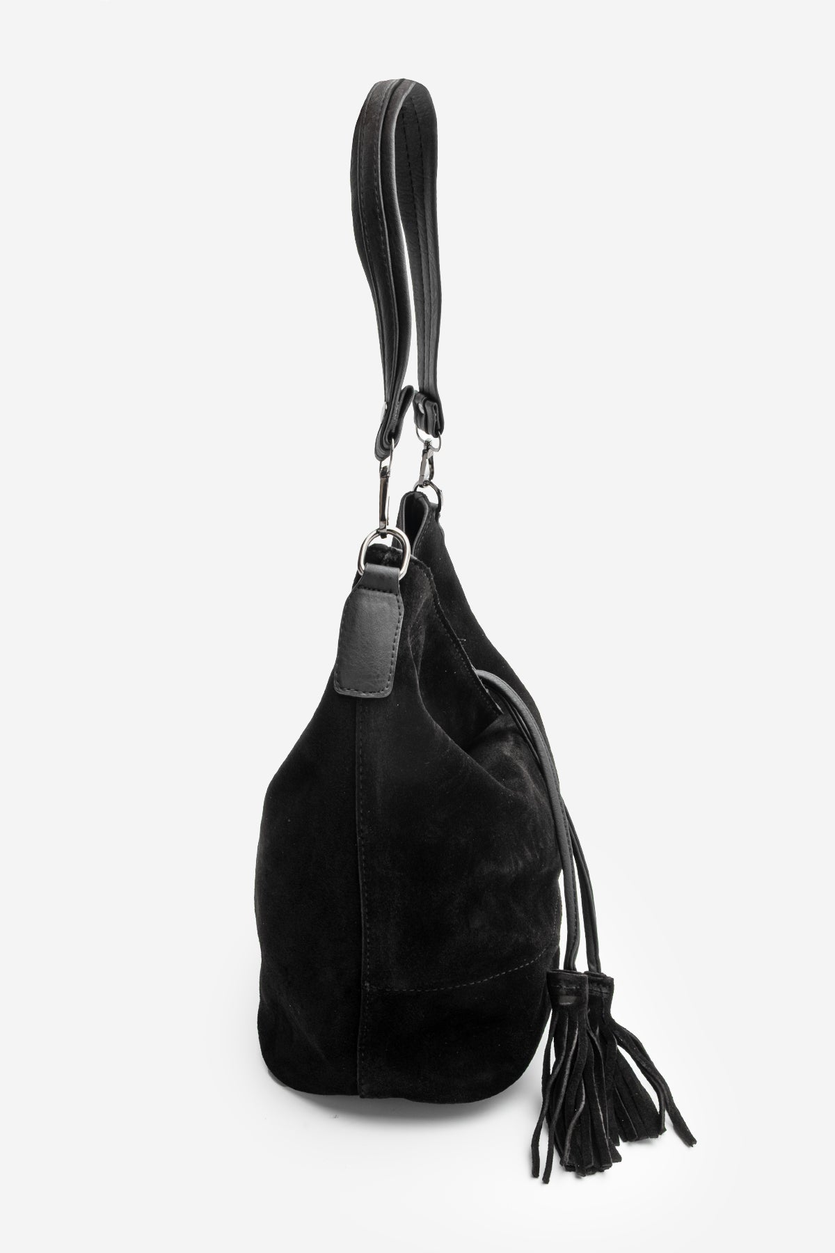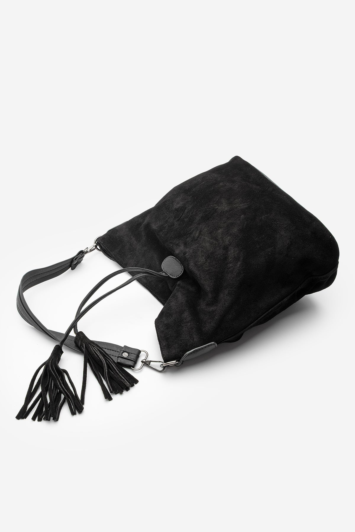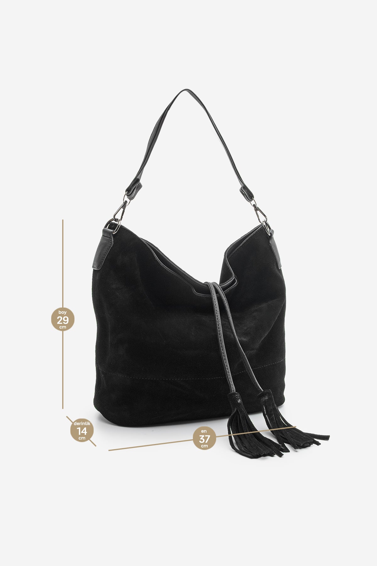 Kadın Hakiki Deri Omuz Çantası Olven - Siyah Süet