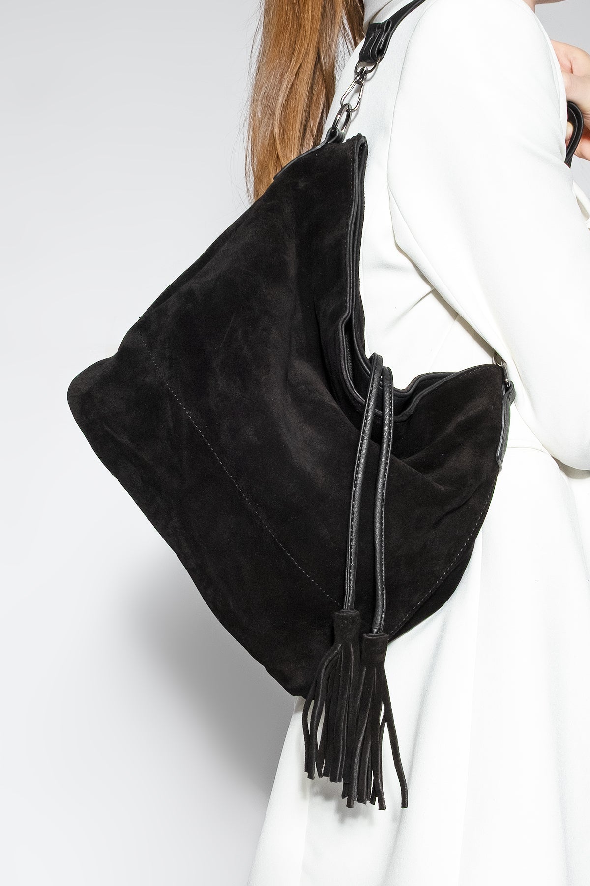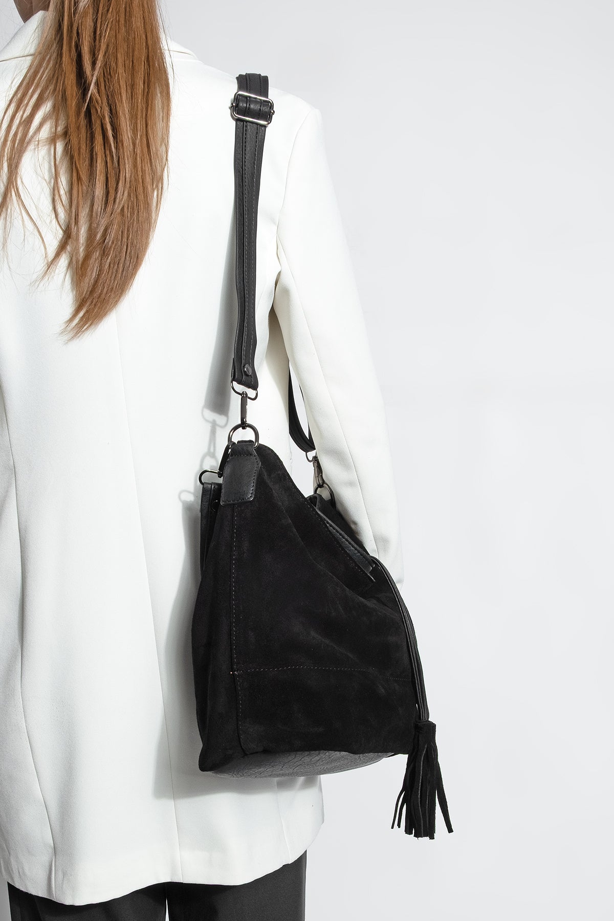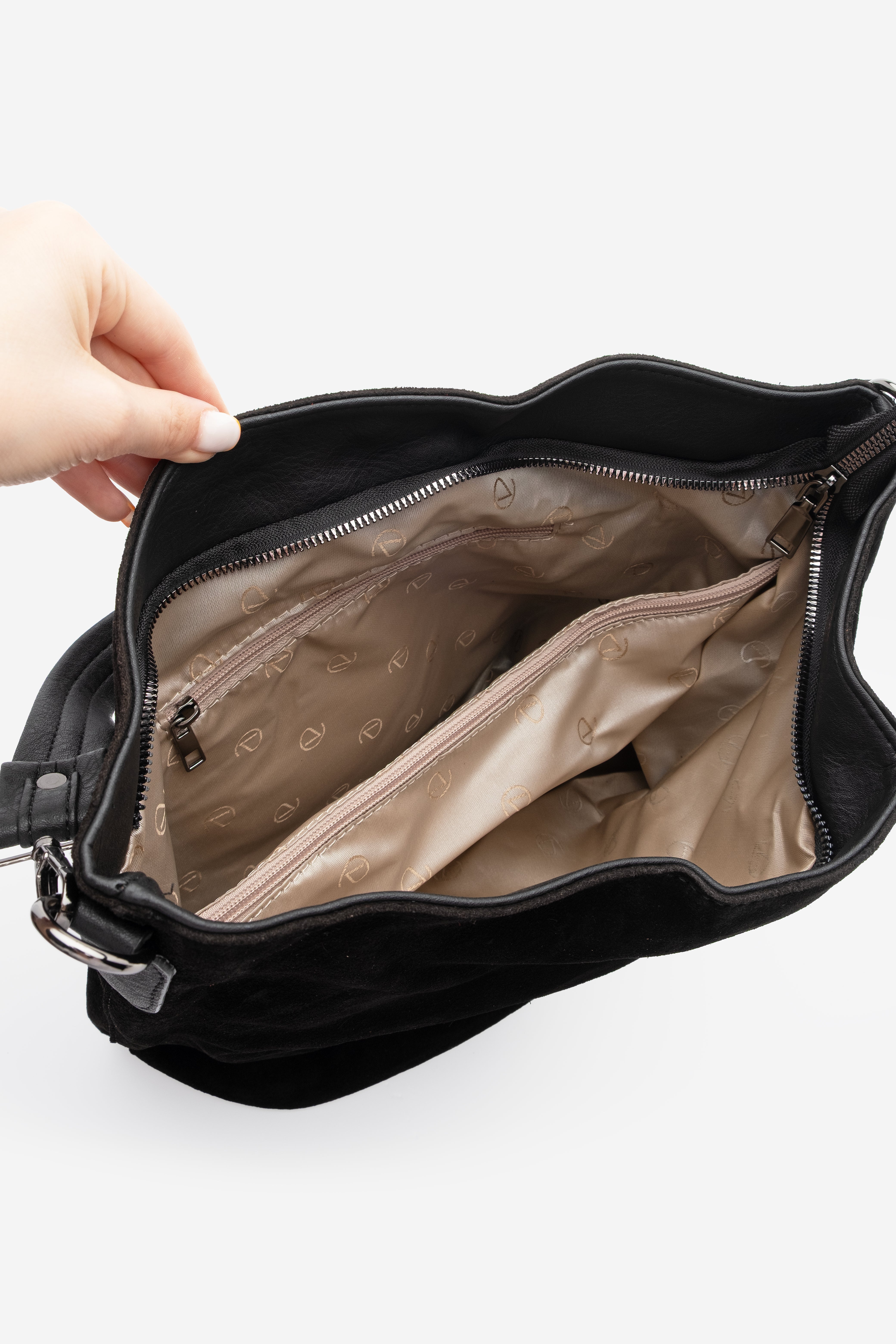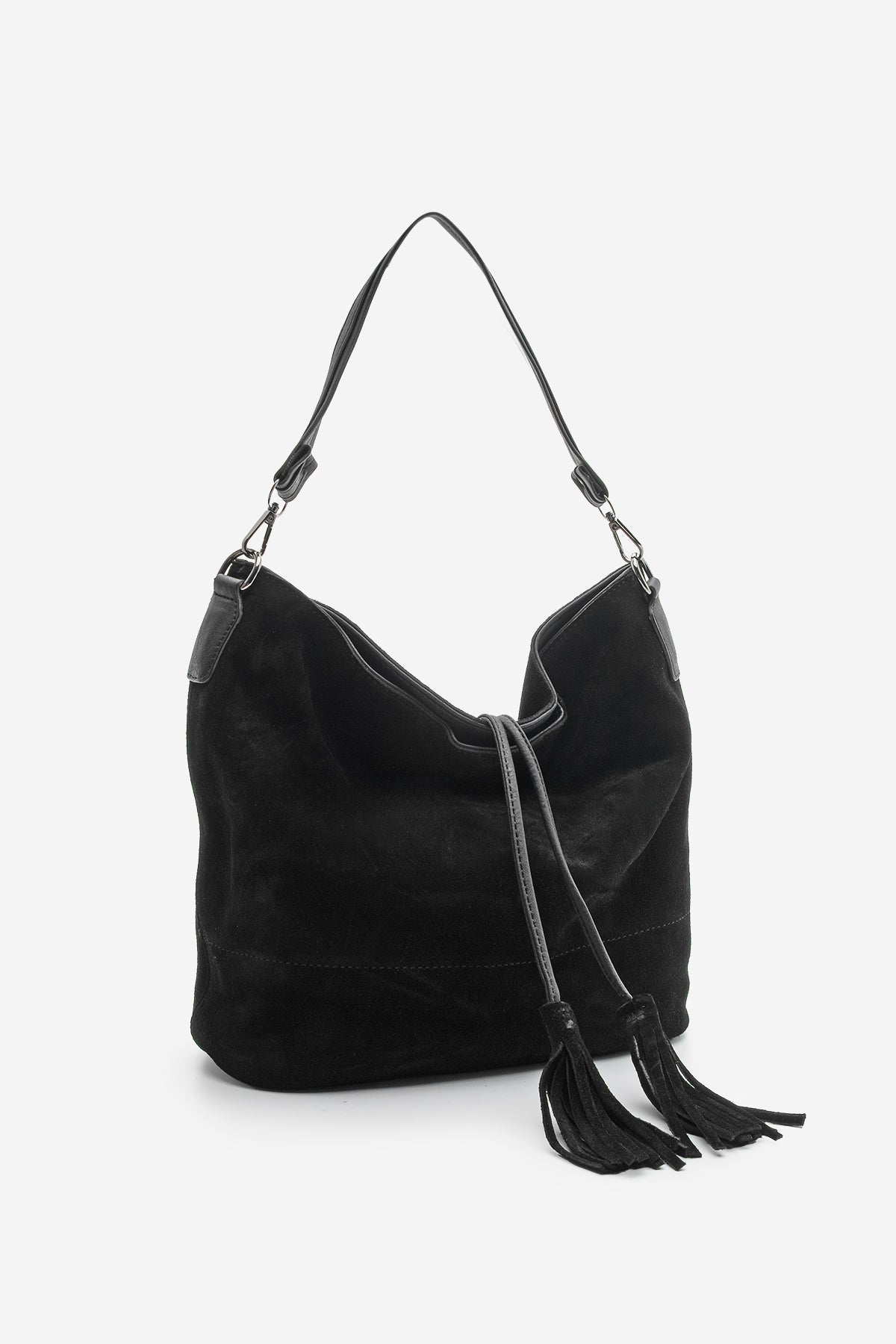 Kadın Hakiki Deri Omuz Çantası Olven - Siyah Süet