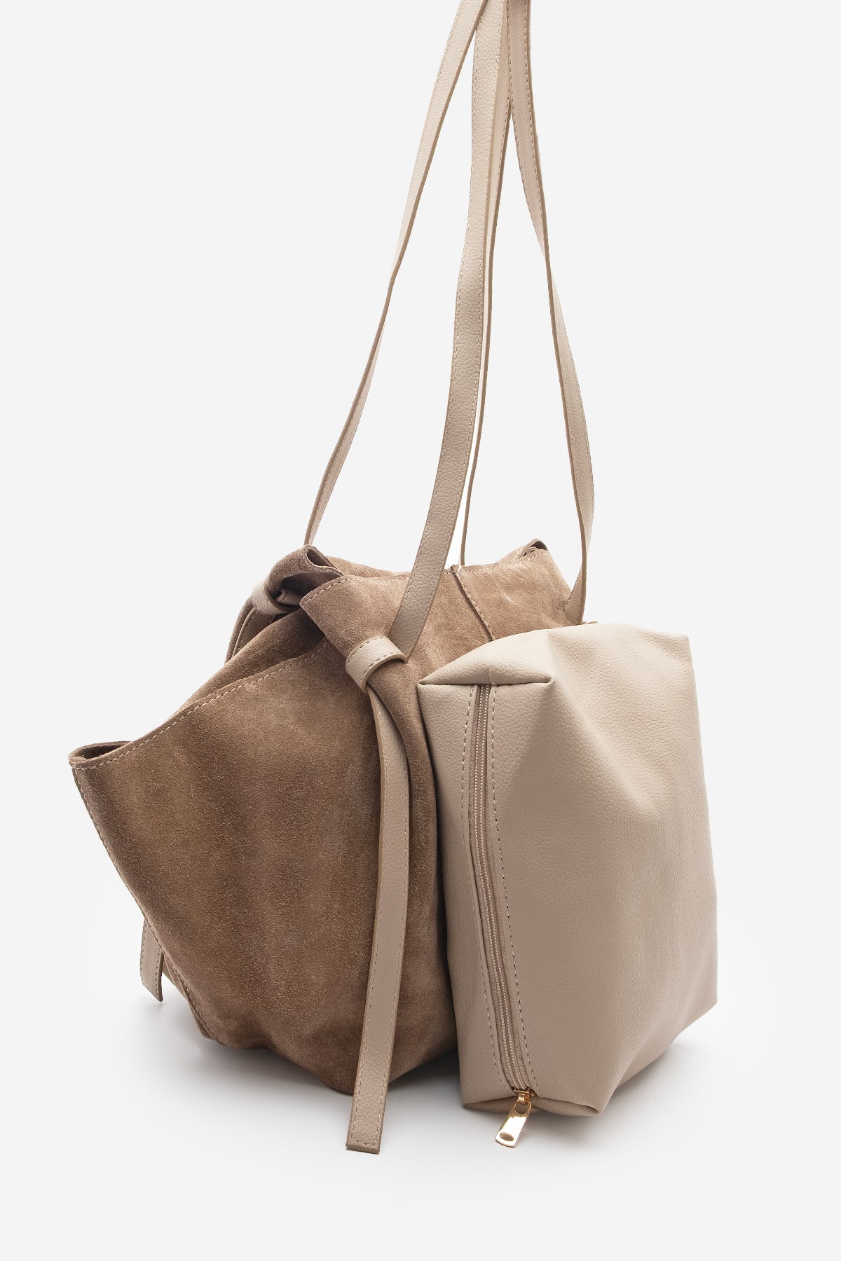 Kadın Hakiki Deri Omuz Çantası Yorita - Vizon Süet