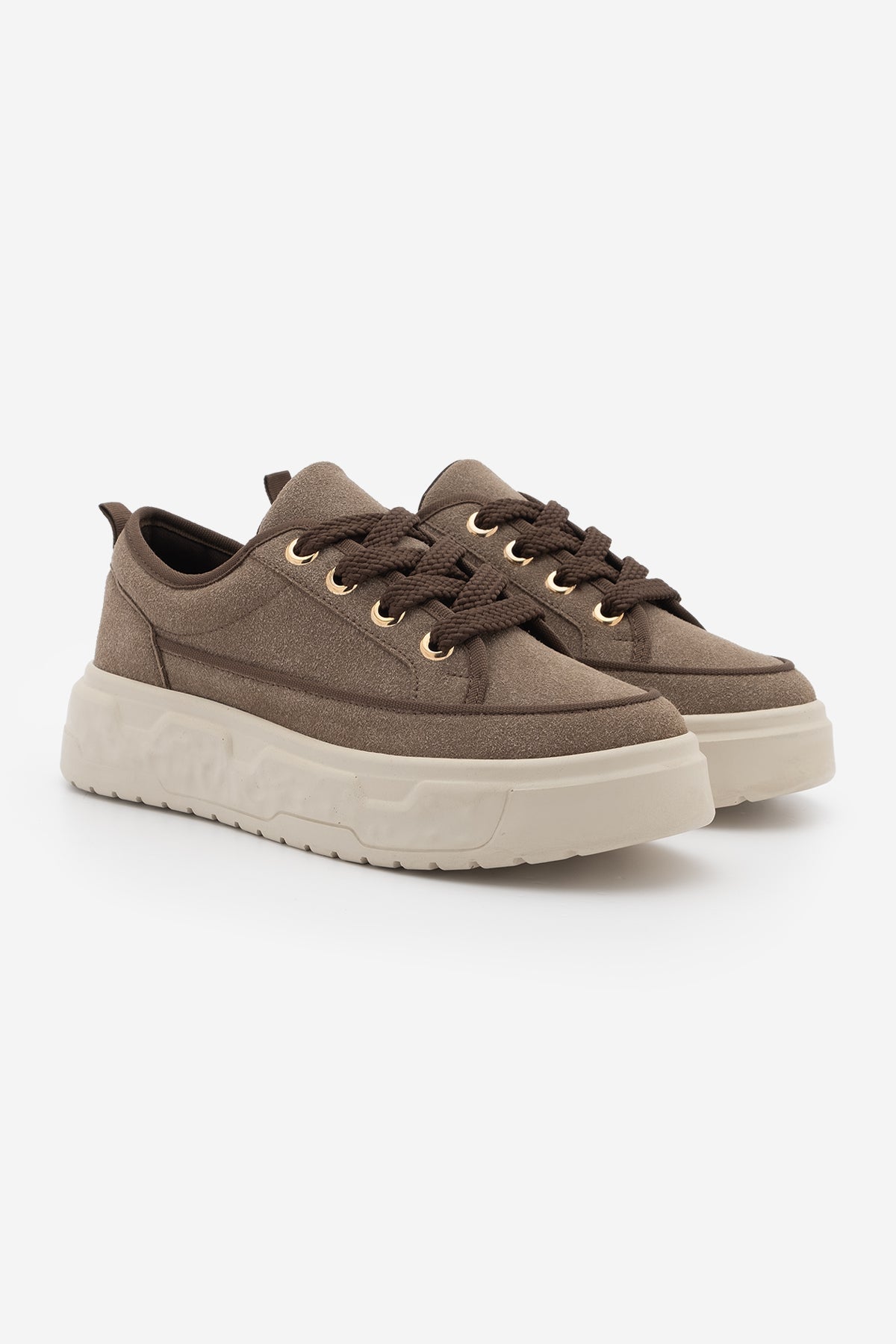 Kadın Sneaker Kalın Taban Spor Ayakkabı Tosge - Kahve Süet