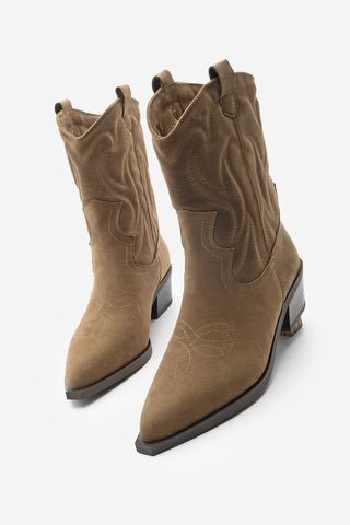 Kadın Sivri Burun Western Bot Vildo - Taba Süet