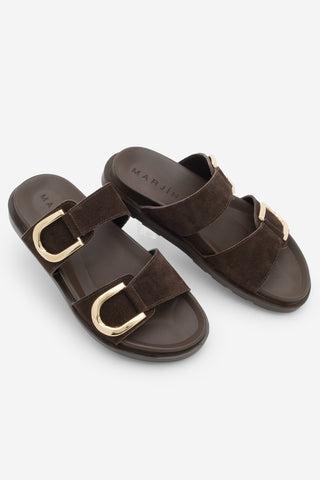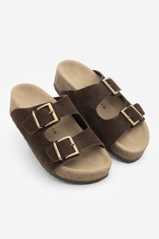 Kadın Hakiki Deri Tokalı Günlük Terlik Merpe - Kahve Süet