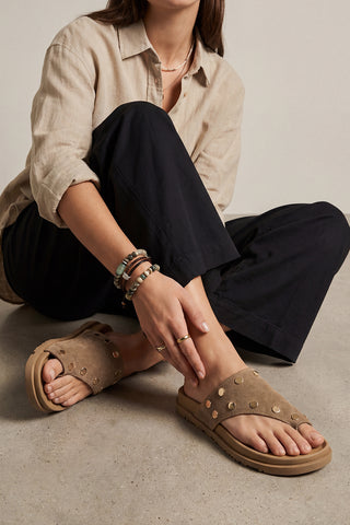 Kadın Hakiki Deri Parmak Arası Zımbalı Günlük Terlik Nobi - Camel Süet