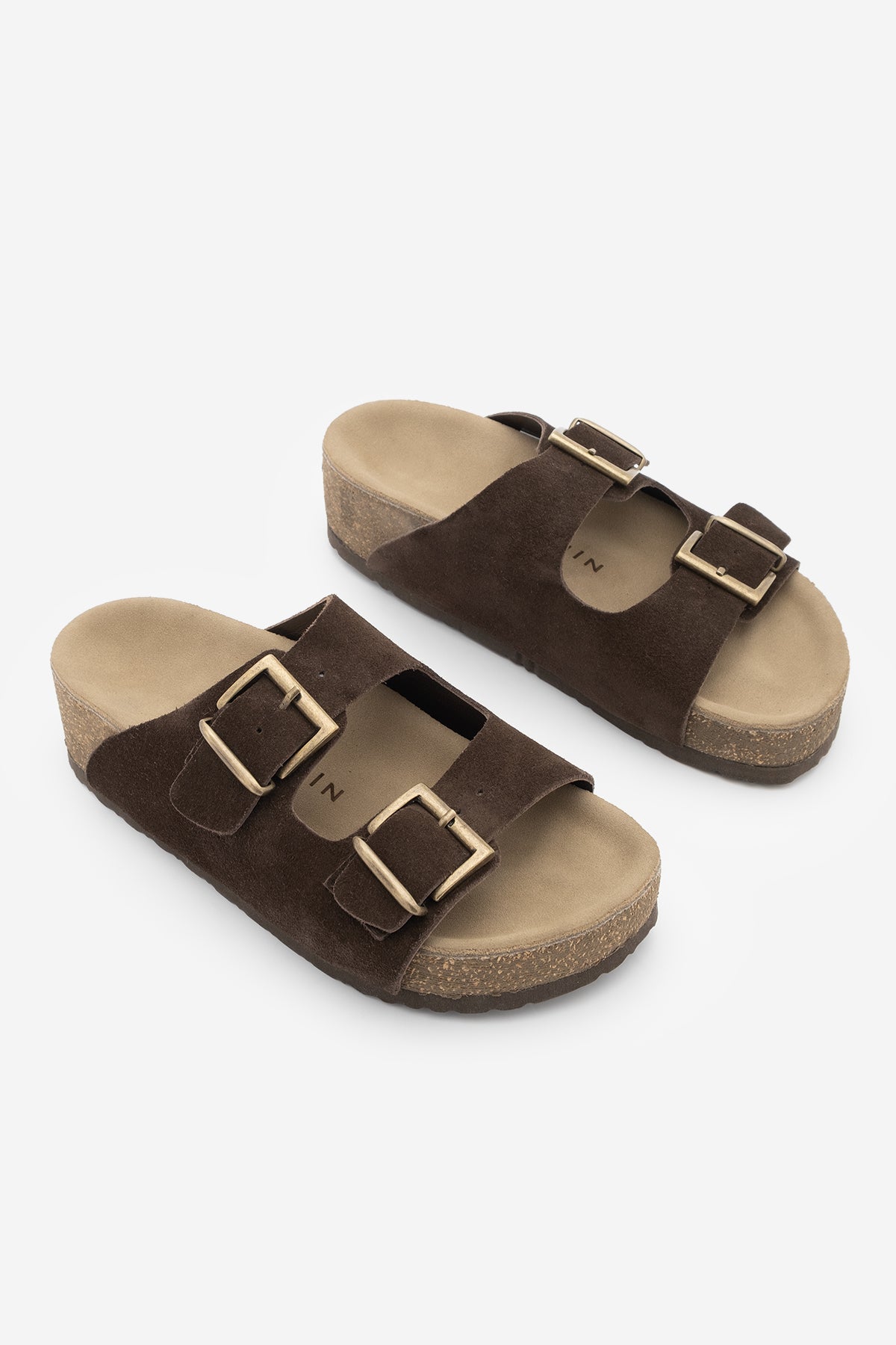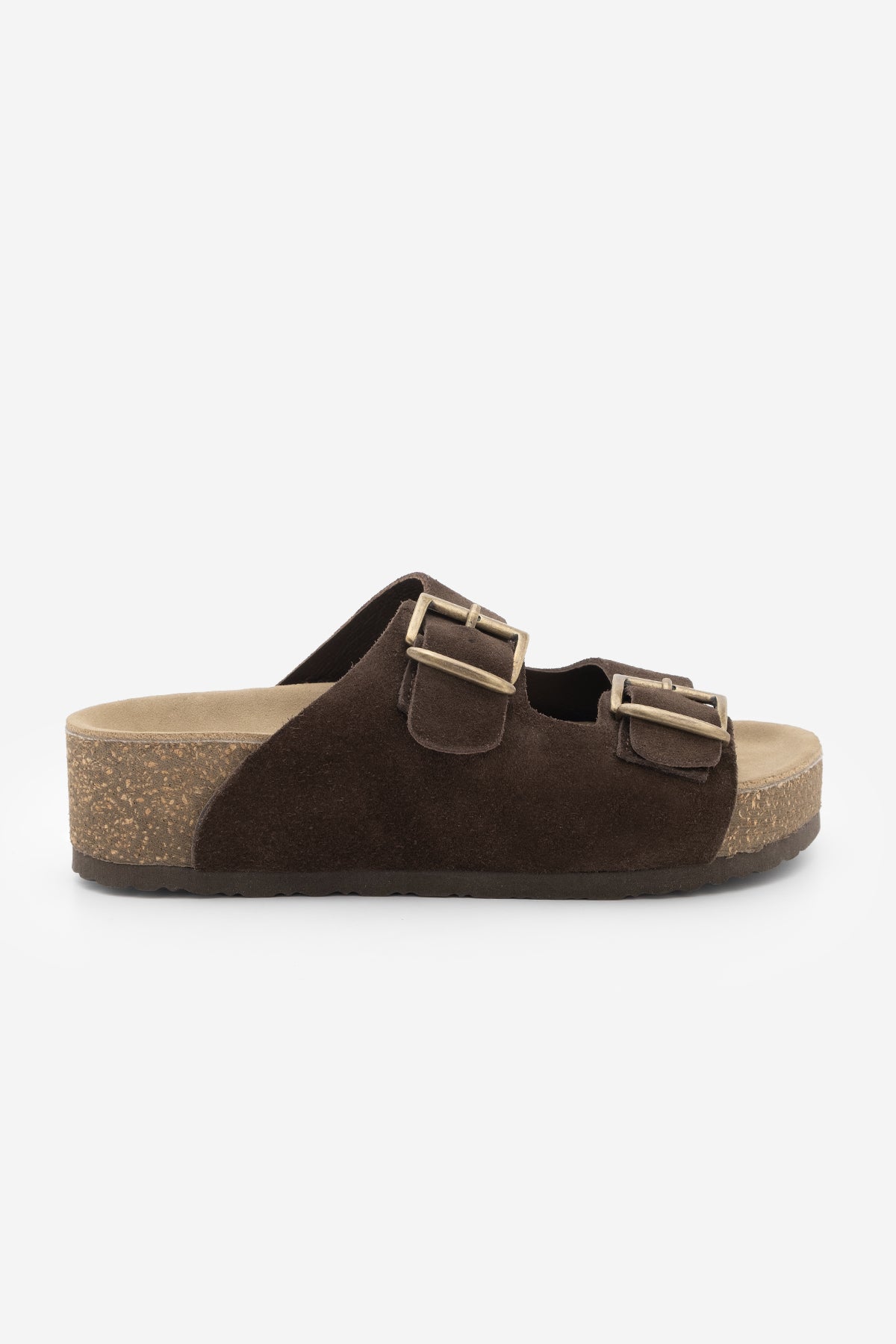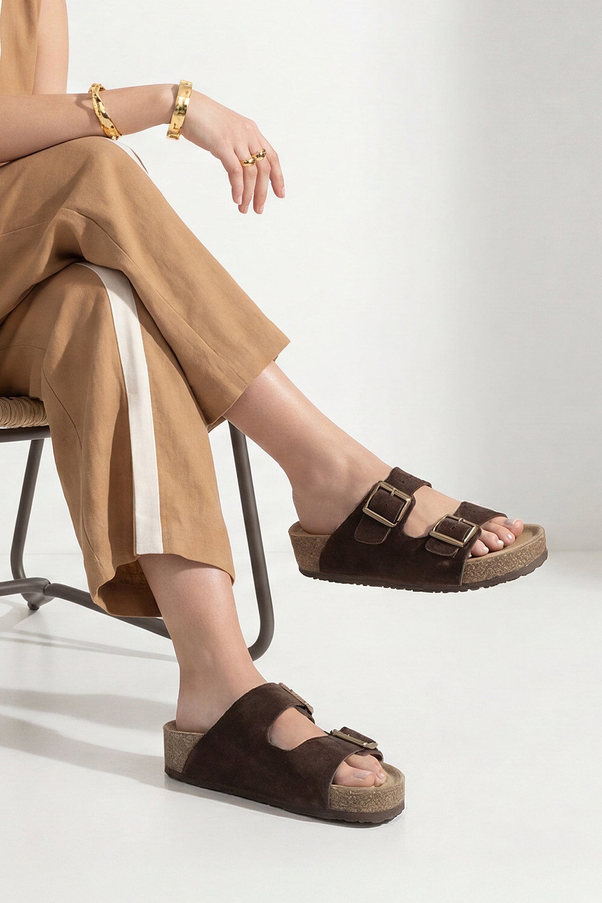 Kadın Hakiki Deri Çift Bantlı Günlük Terlik Digoza - Kahve Süet