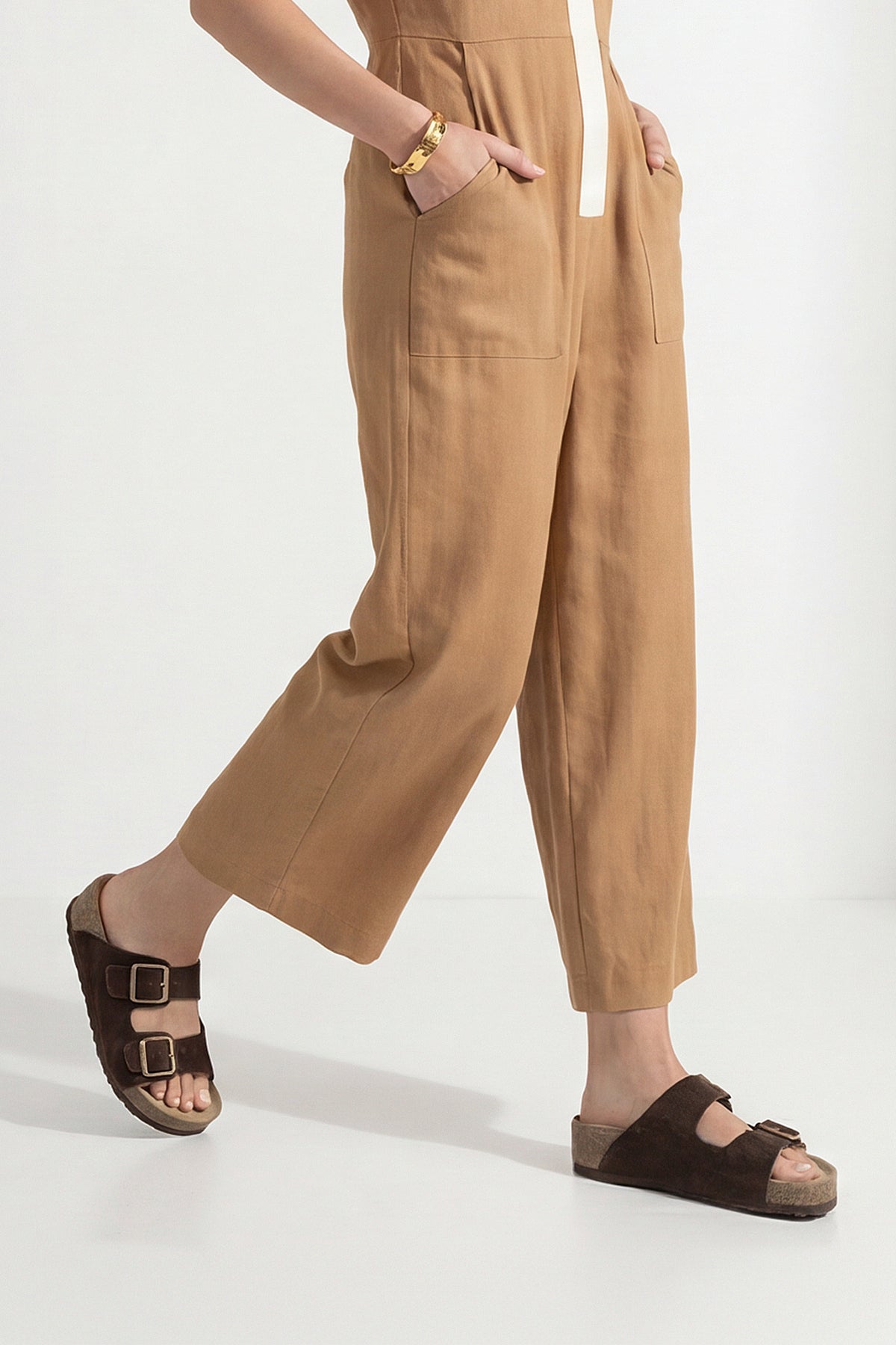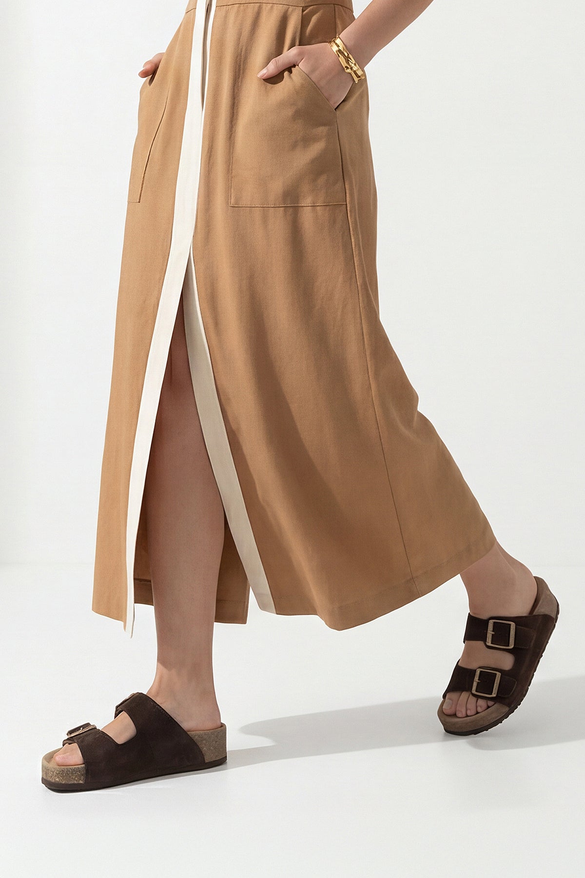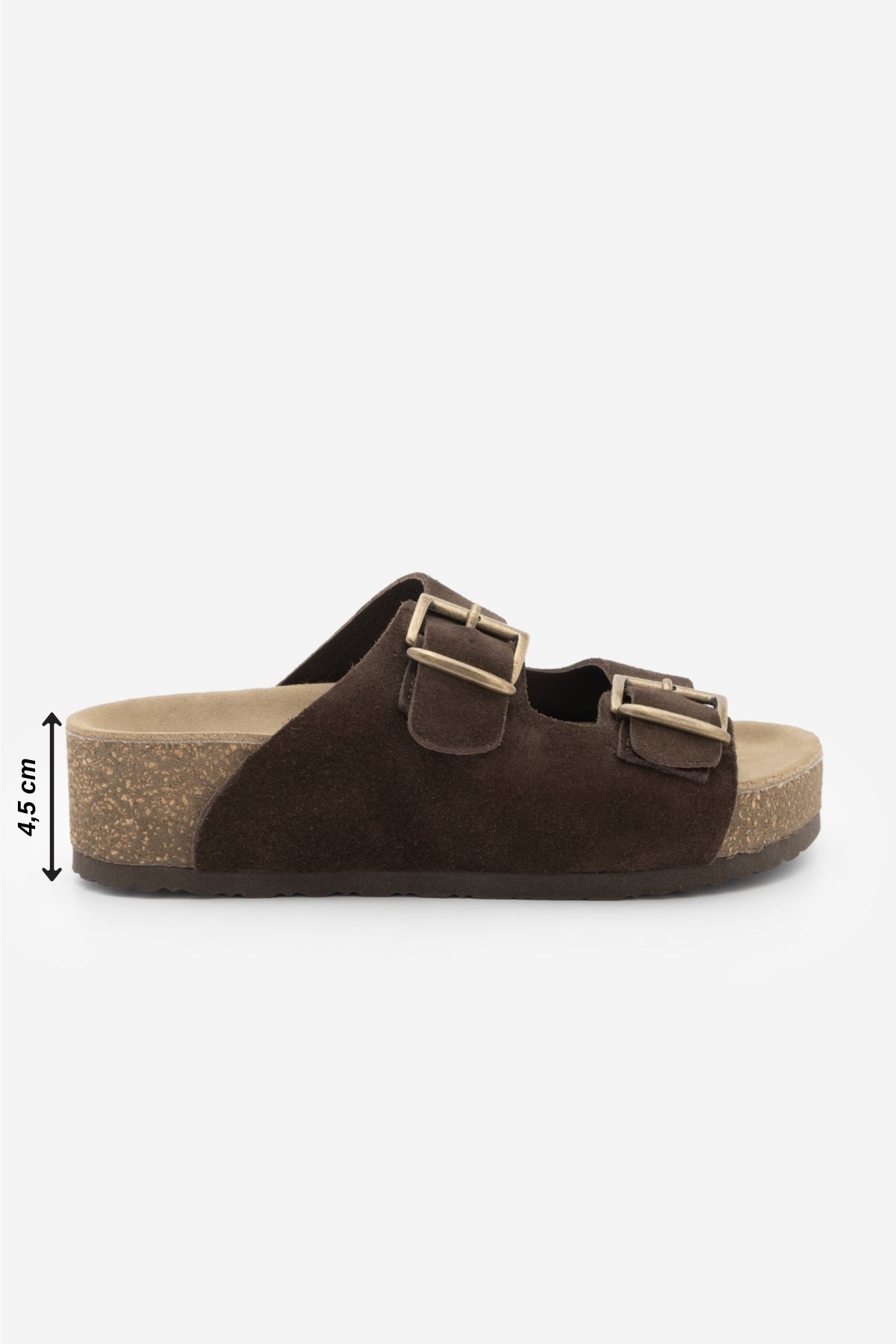 Kadın Hakiki Deri Çift Bantlı Günlük Terlik Digoza - Kahve Süet
