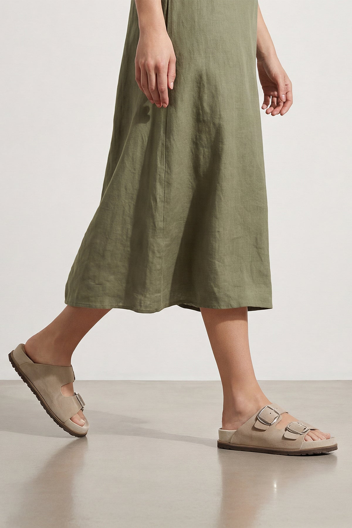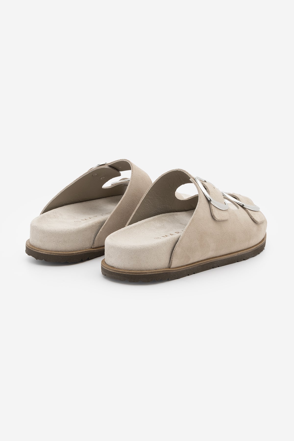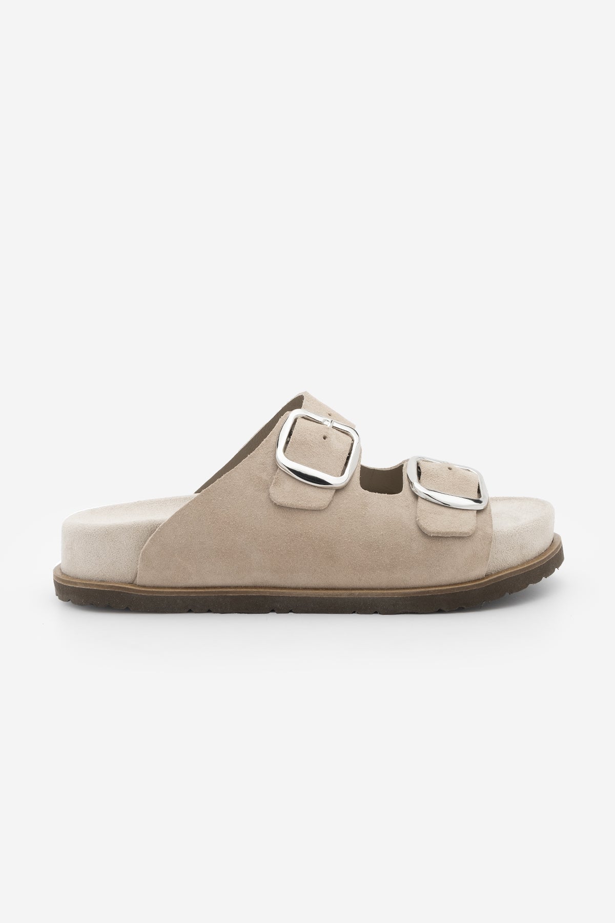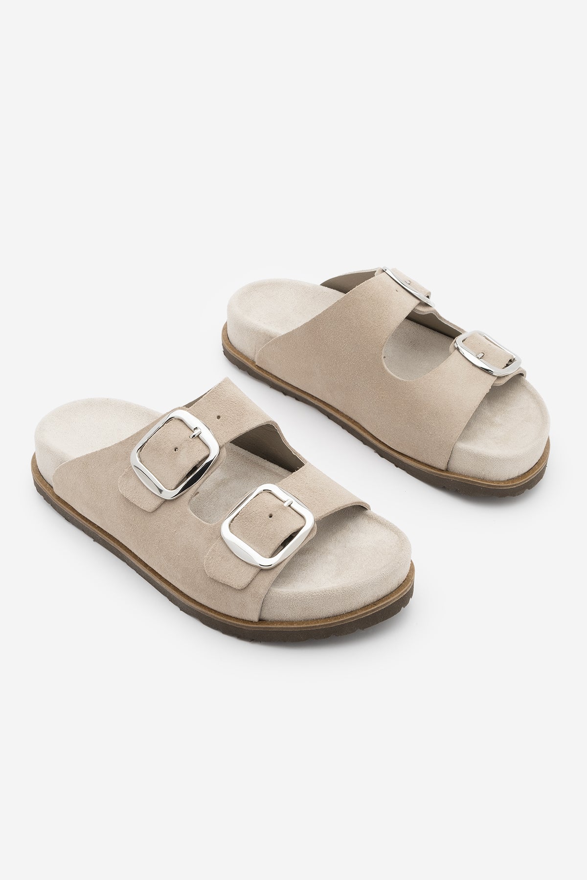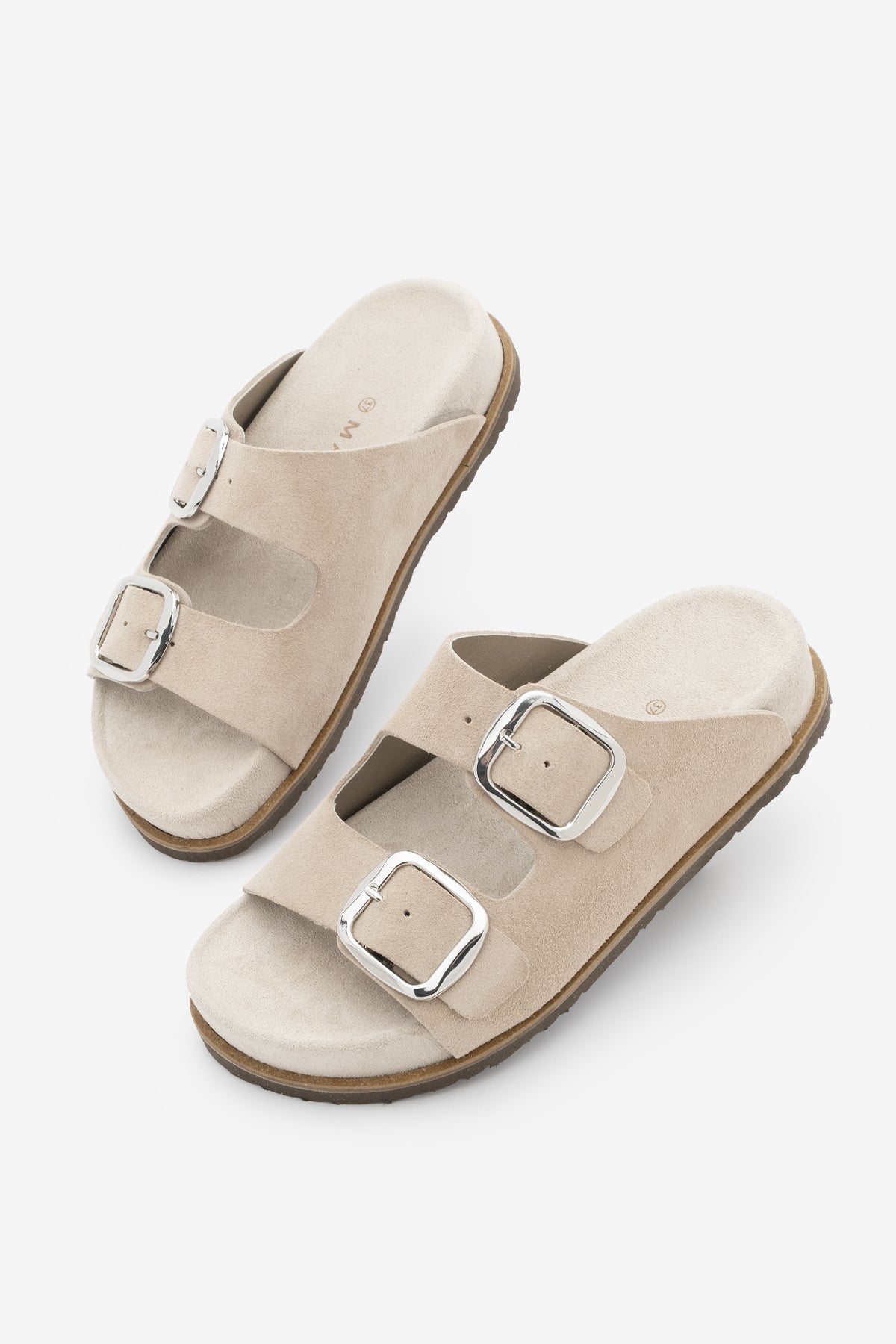 Kadın Hakiki Deri Çift Bantlı Günlük Terlik Melka - Bej Süet