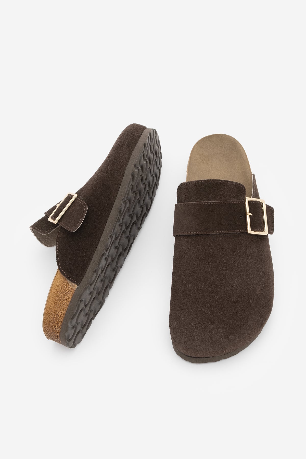 Kadın Hakiki Deri Eva Taban Sabo Günlük Terlik Sumpa - Kahve Süet