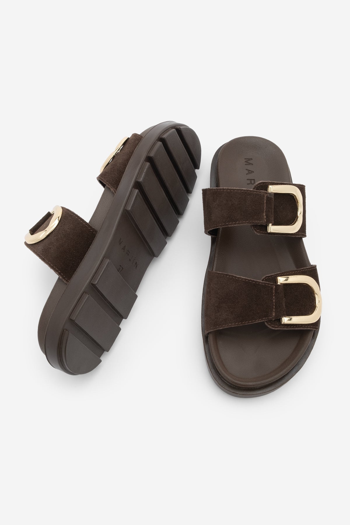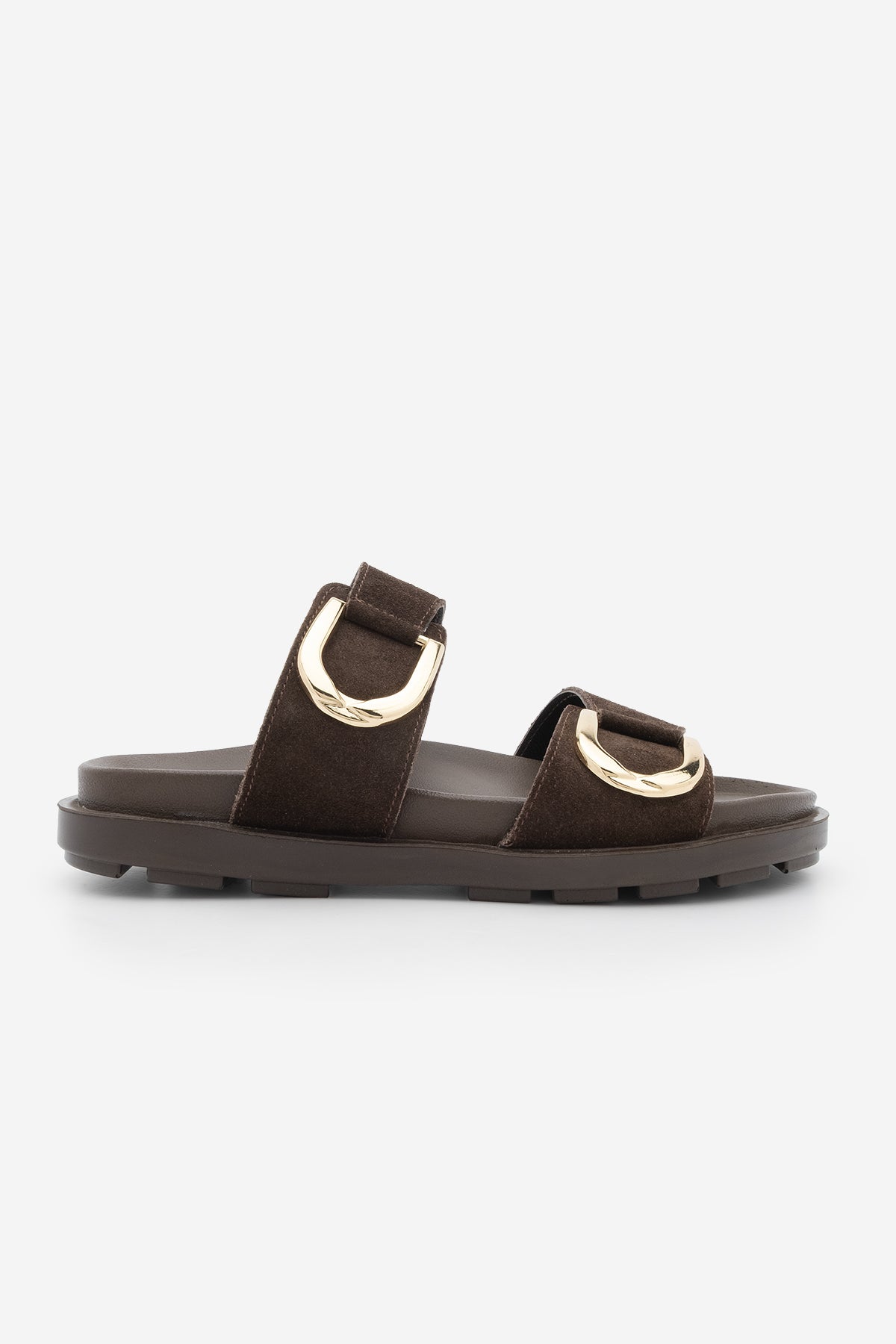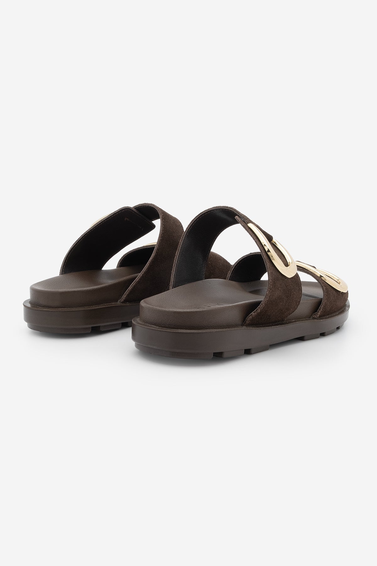 Kadın Hakiki Deri Tokalı Günlük Terlik Merpe - Kahve Süet
