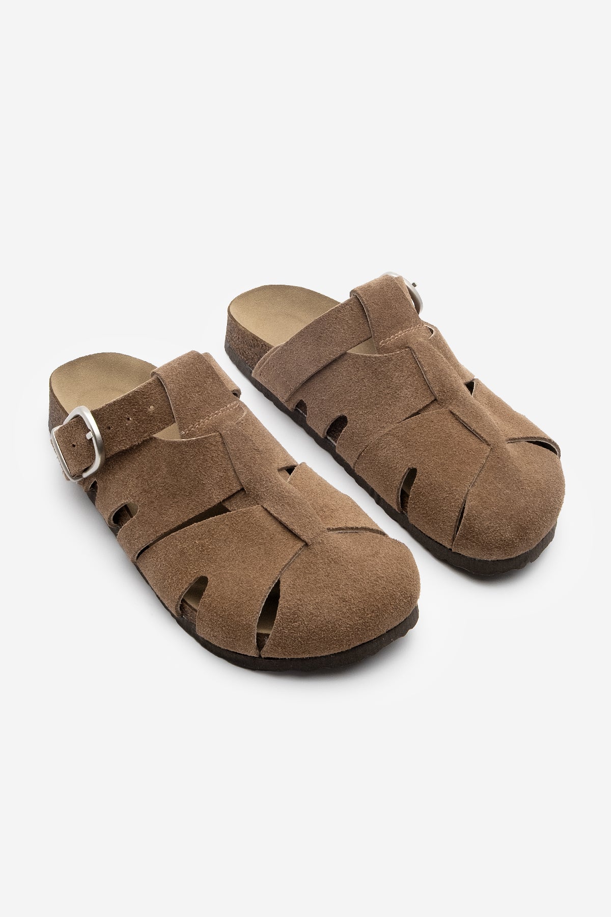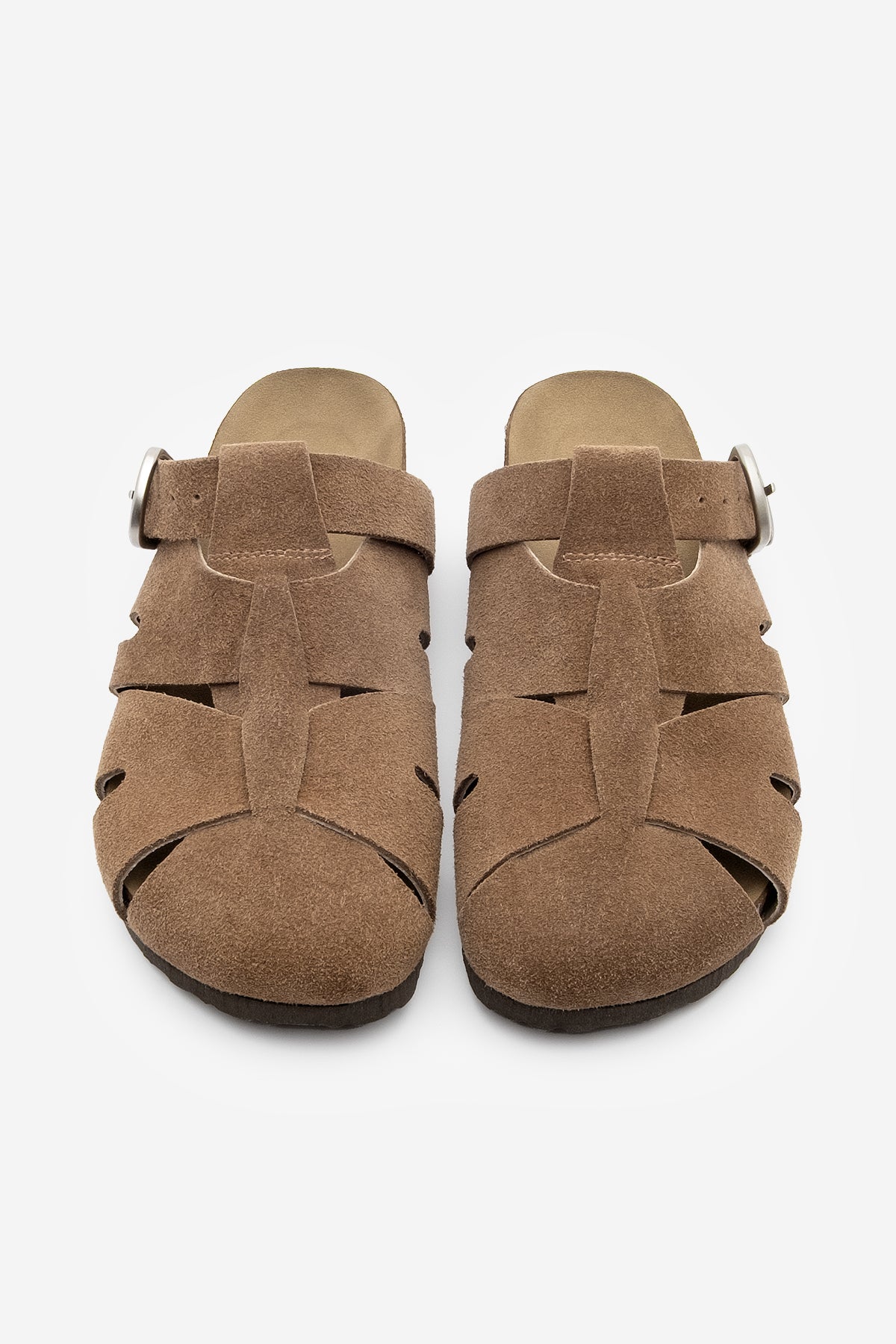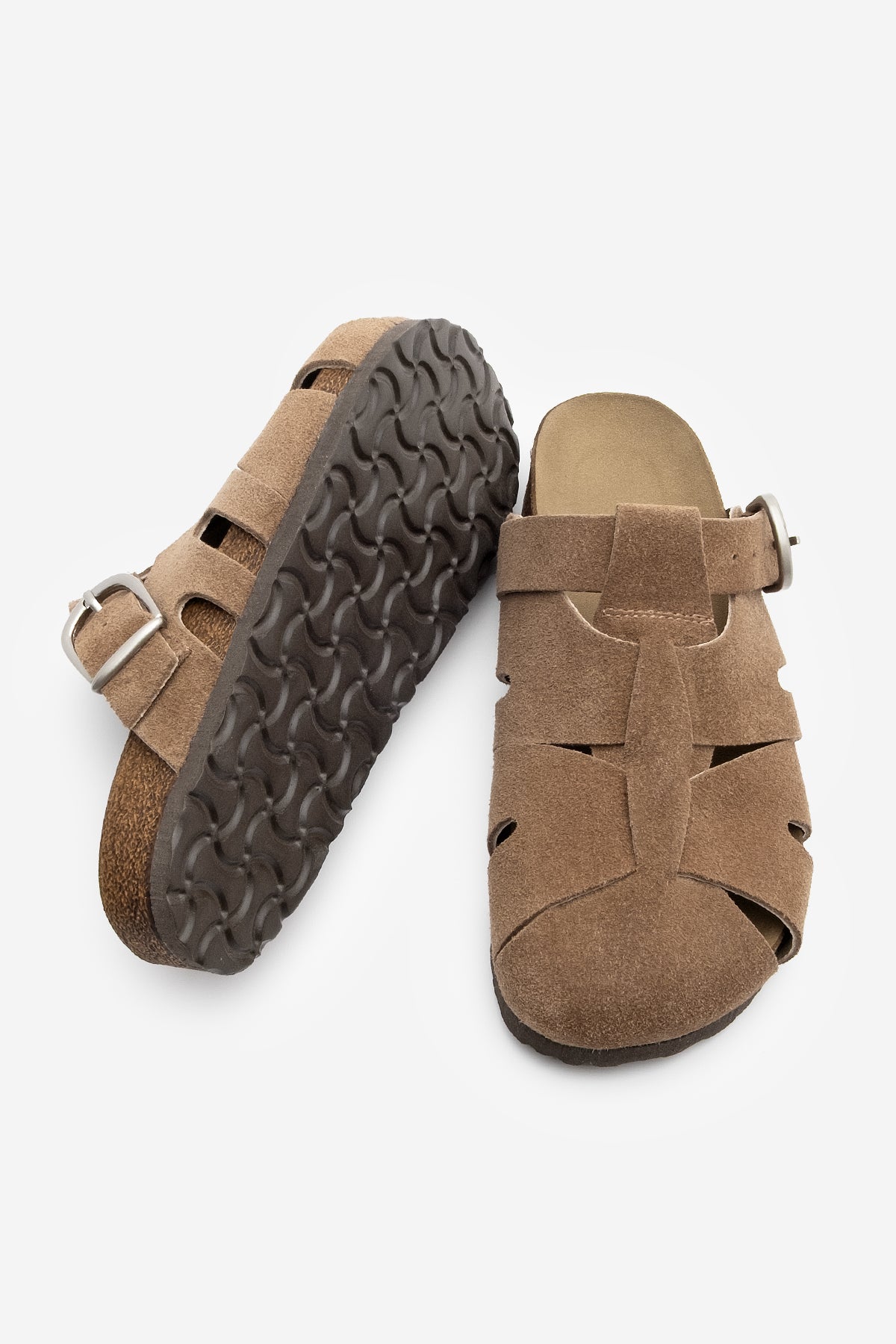 Kadın Hakiki Deri Tokalı Süet Terlik Yolis - Camel Süet