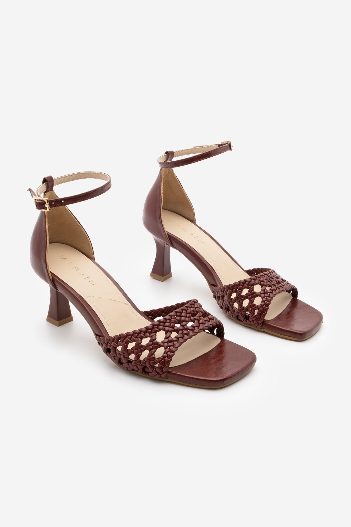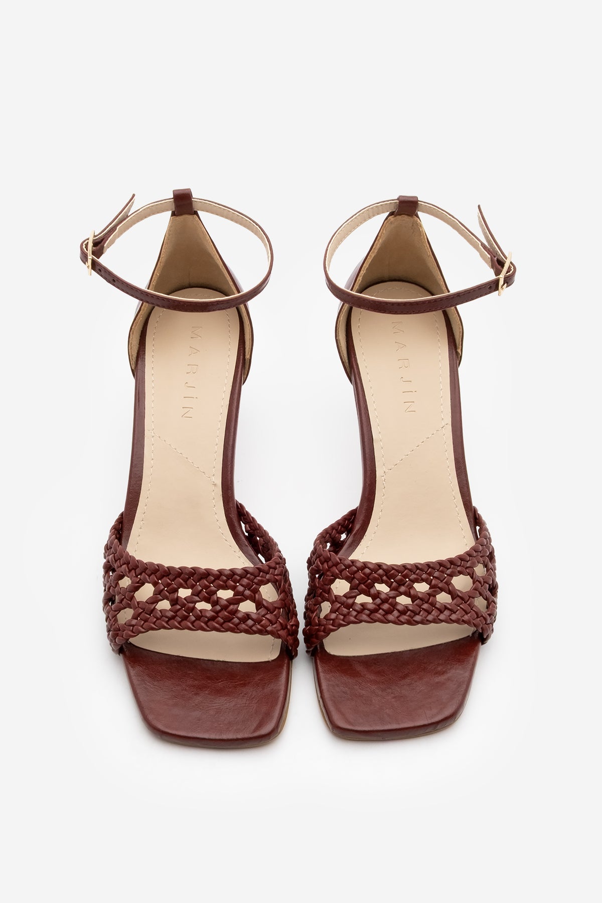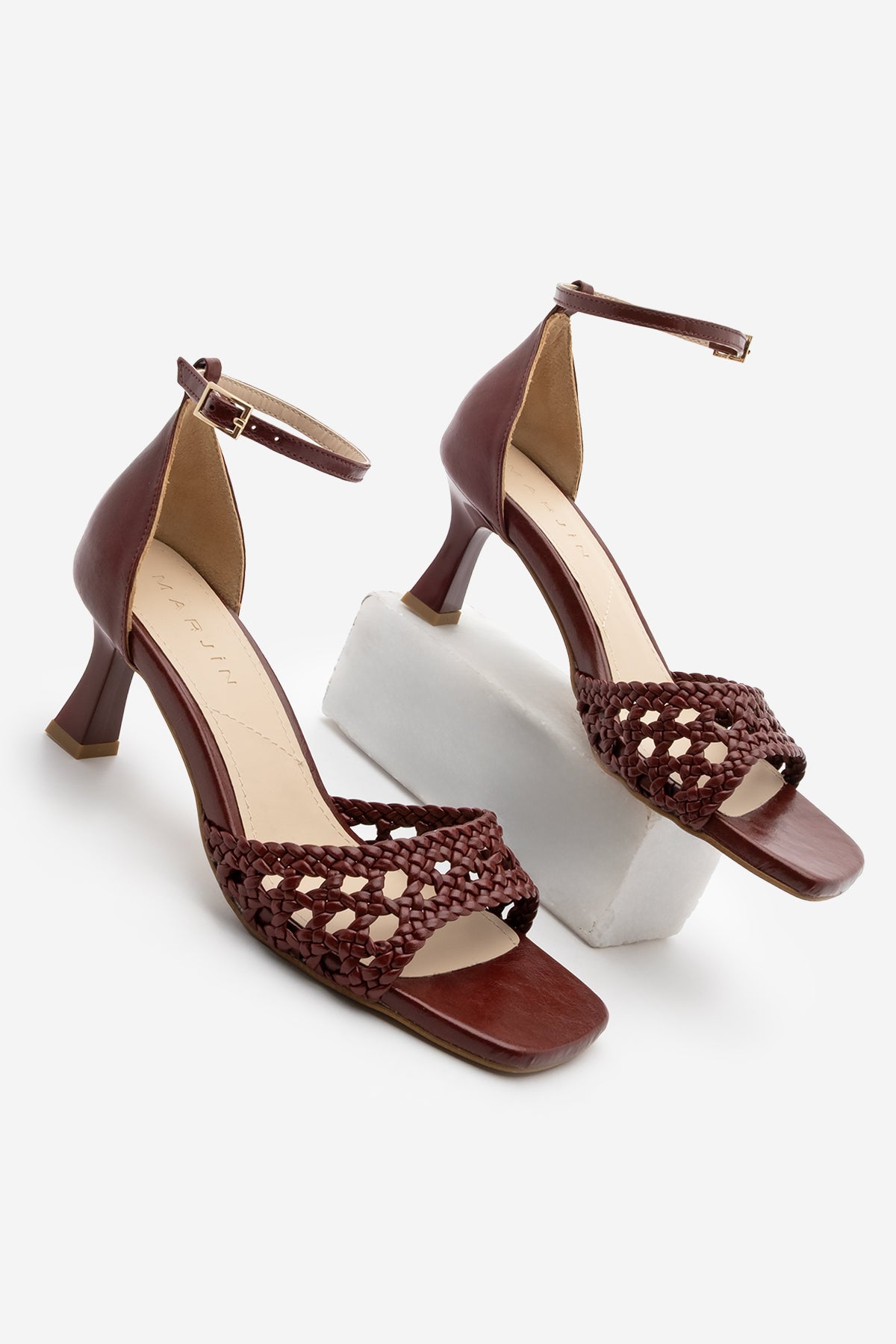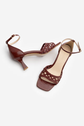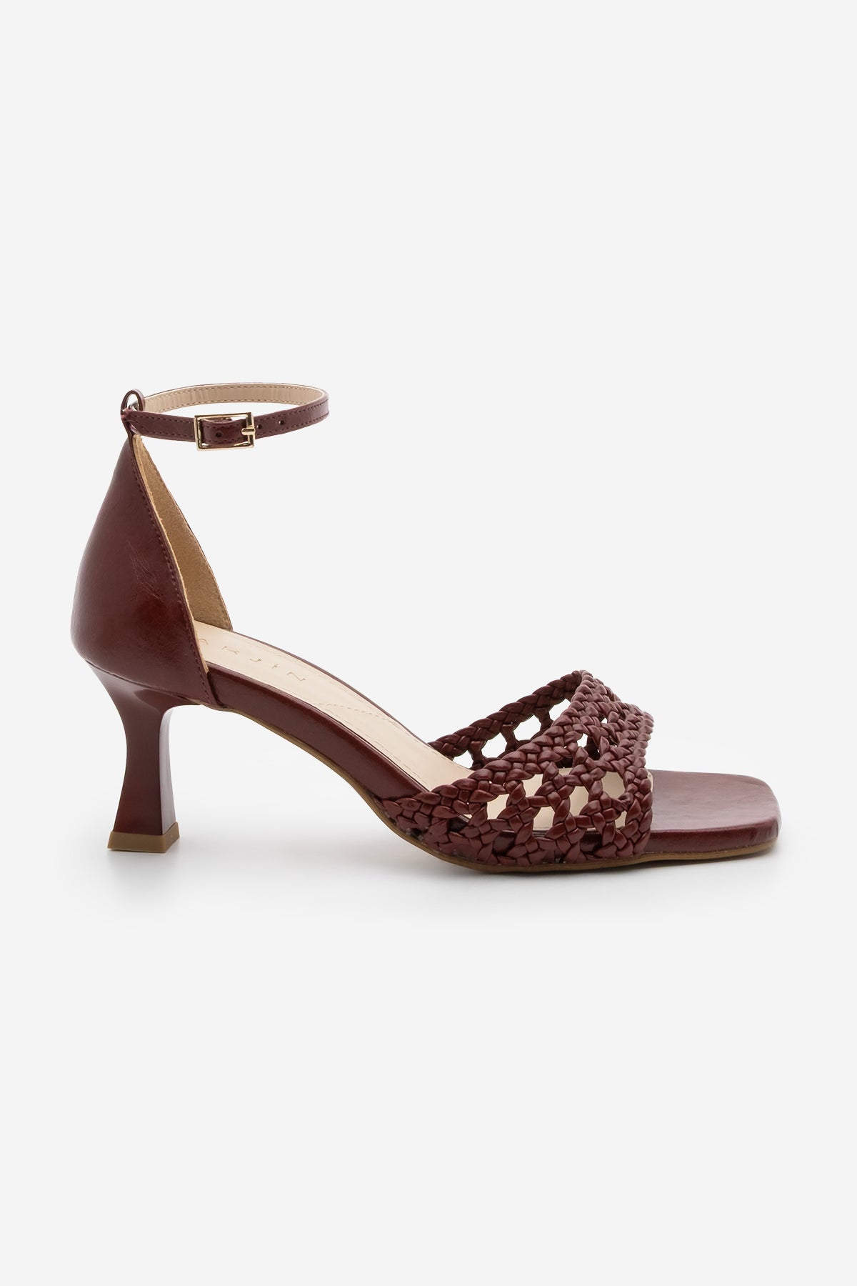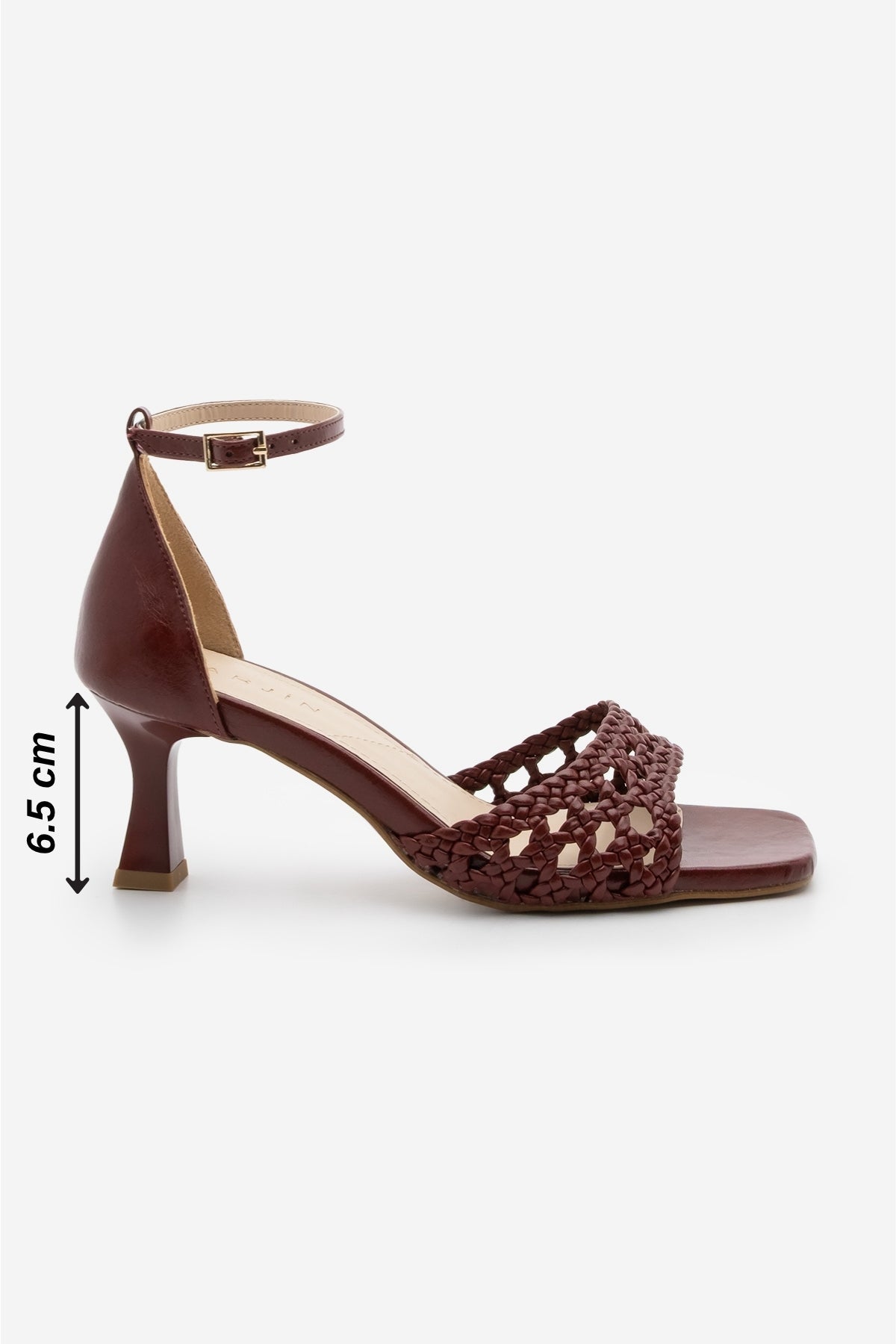 Kadın El Örgülü Topuklu Sandalet Lonpe - Bordo