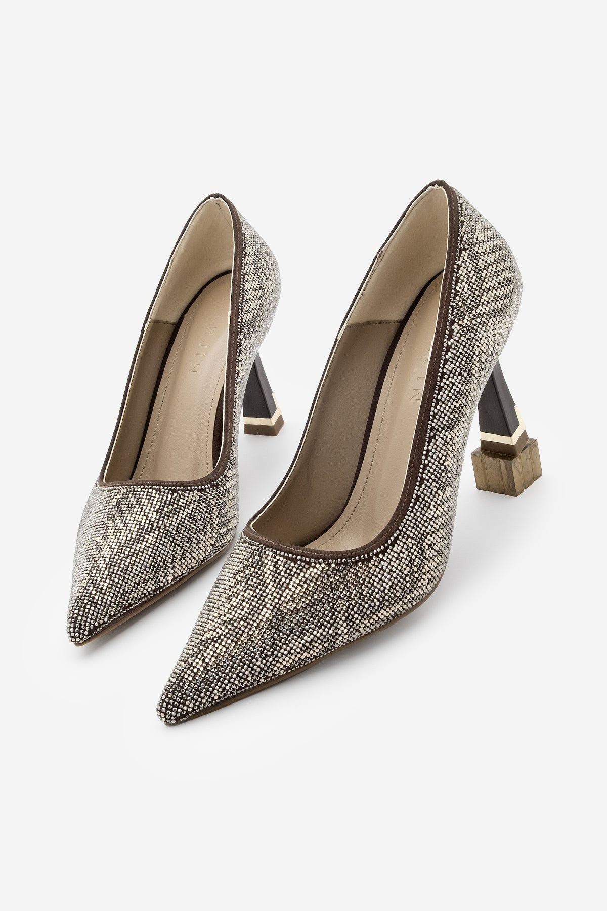 Kadın Stiletto Taşlı Topuklu Ayakkabı Arleta - Kahve