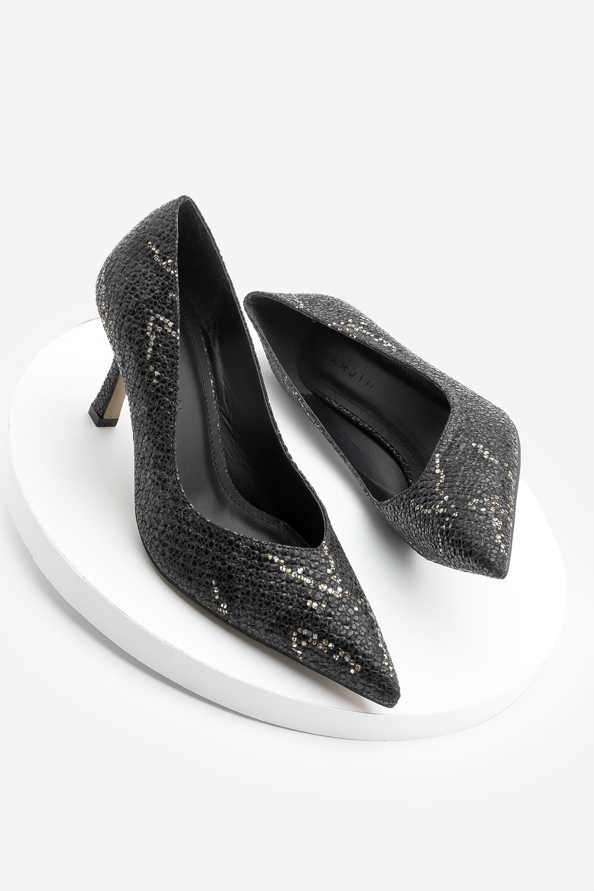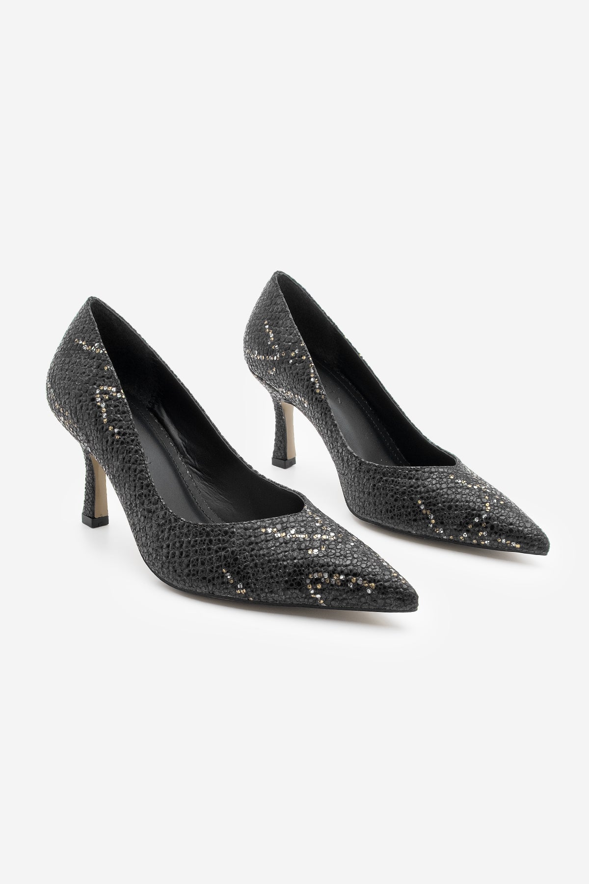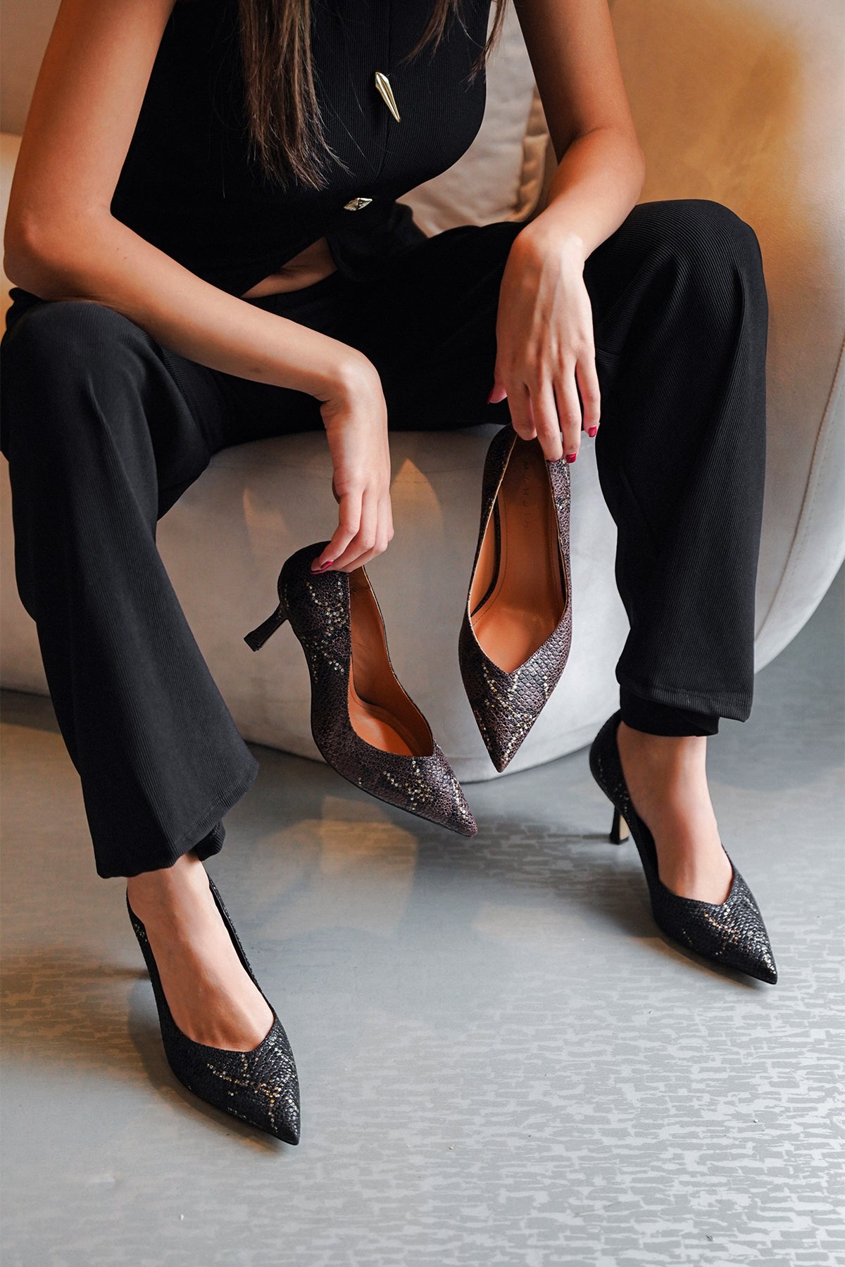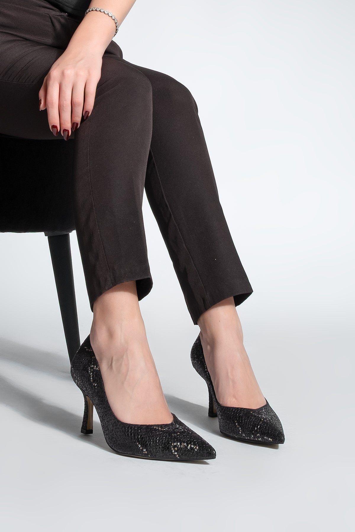 Kadın Stiletto Topuklu Ayakkabı Tosey - Siyah Yılan