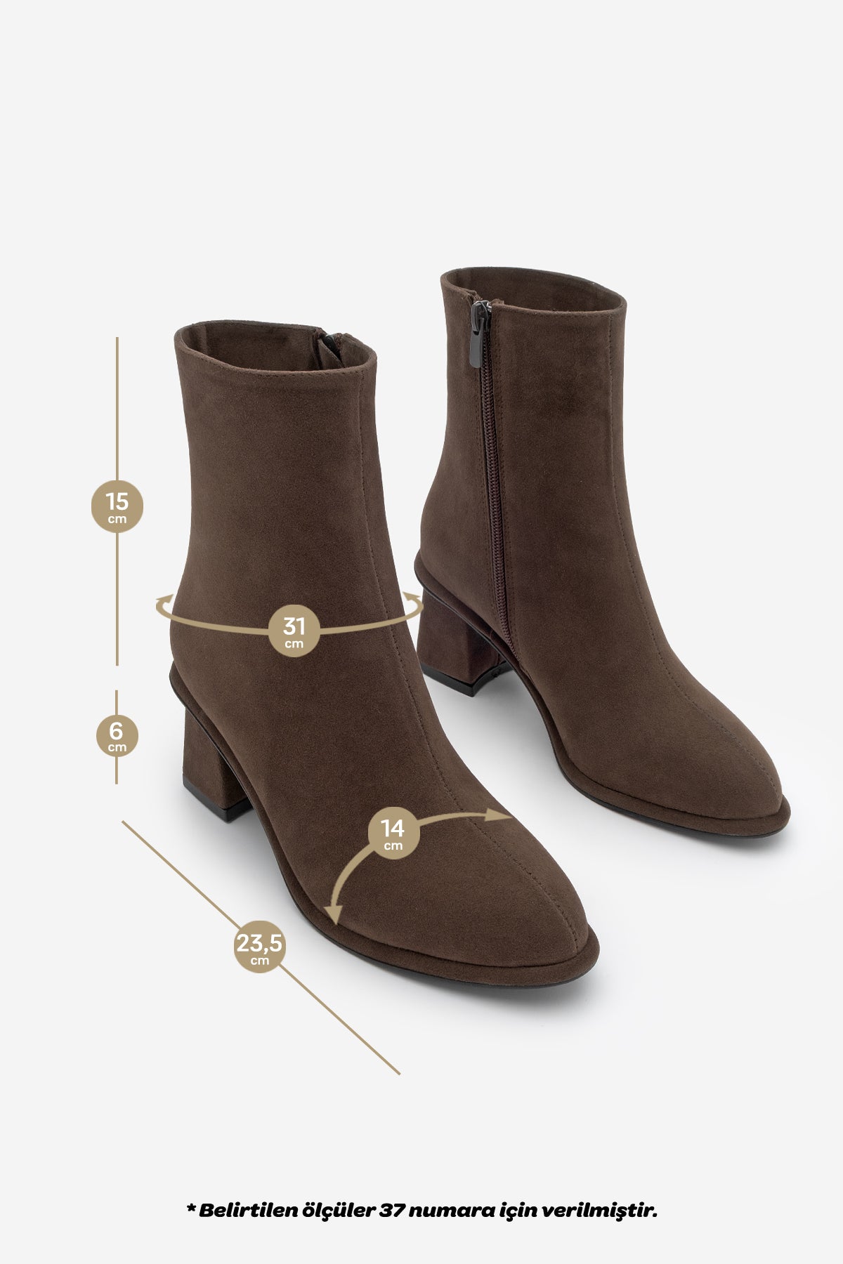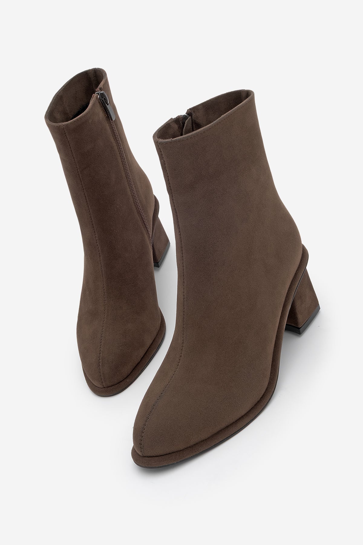 Kadın Arkadan Fermuarlı Topuklu Bot Atirya - Kahve Süet