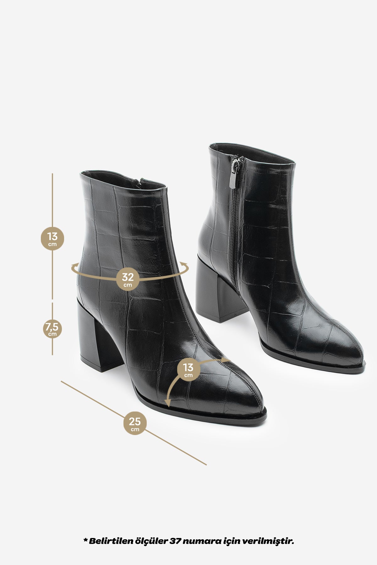 Kadın Kalın Topuklu Bot Verika - Siyah Croco