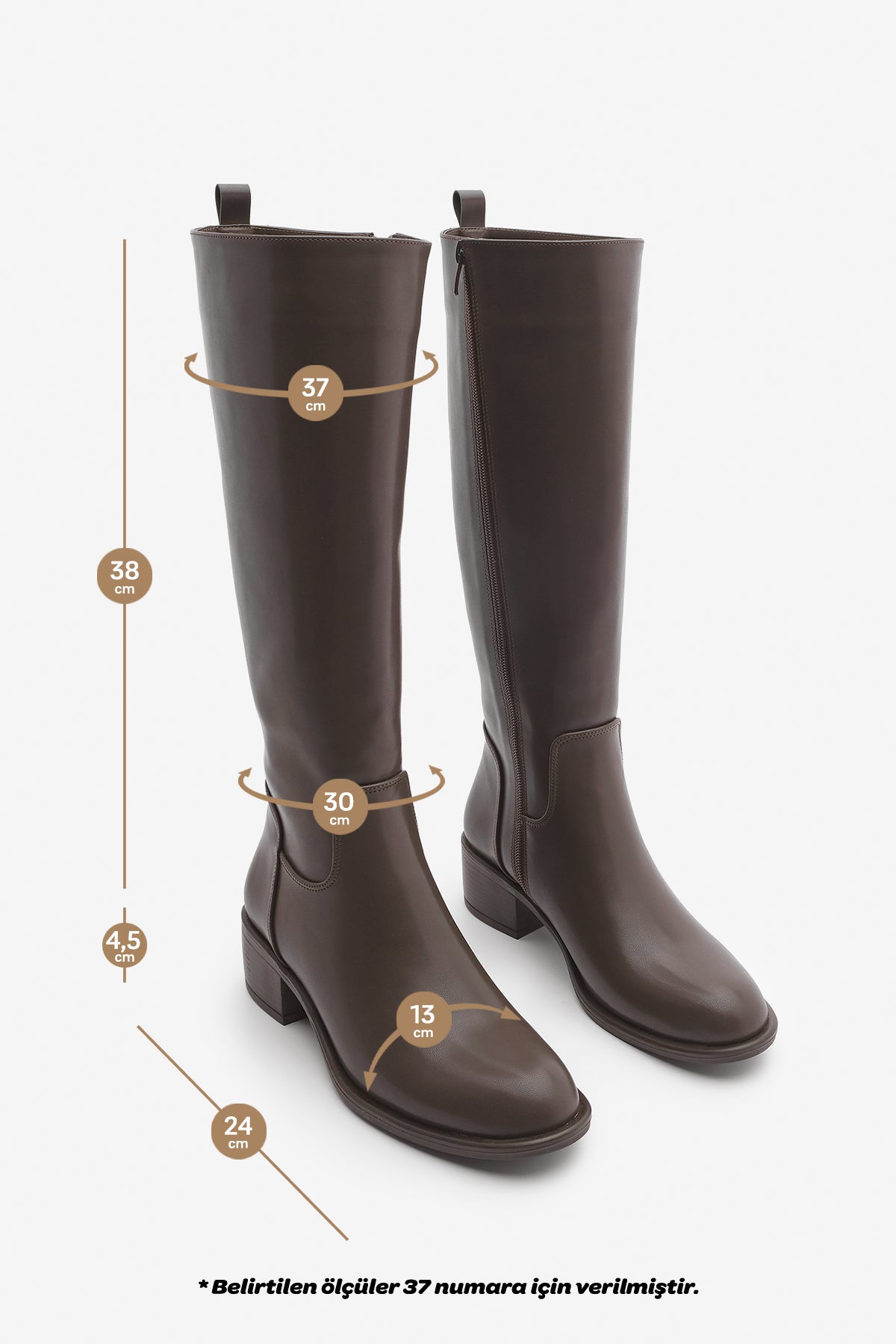 Kadın Topuklu Çizme Levarin - Kahve