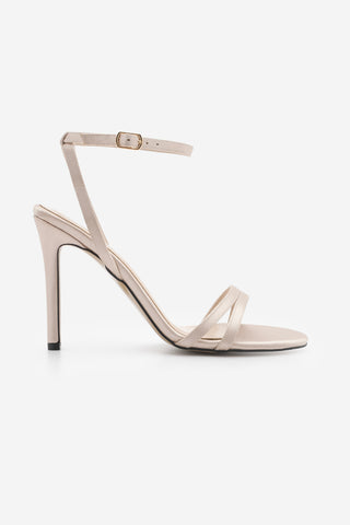 Kadın Bantlı İnce Klasik Topuklu Sandalet Moneza - Bej Saten