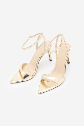 Kadın Sivri Burun Bantlı İnce Klasik Topuklu Sandalet Lokes - Altın